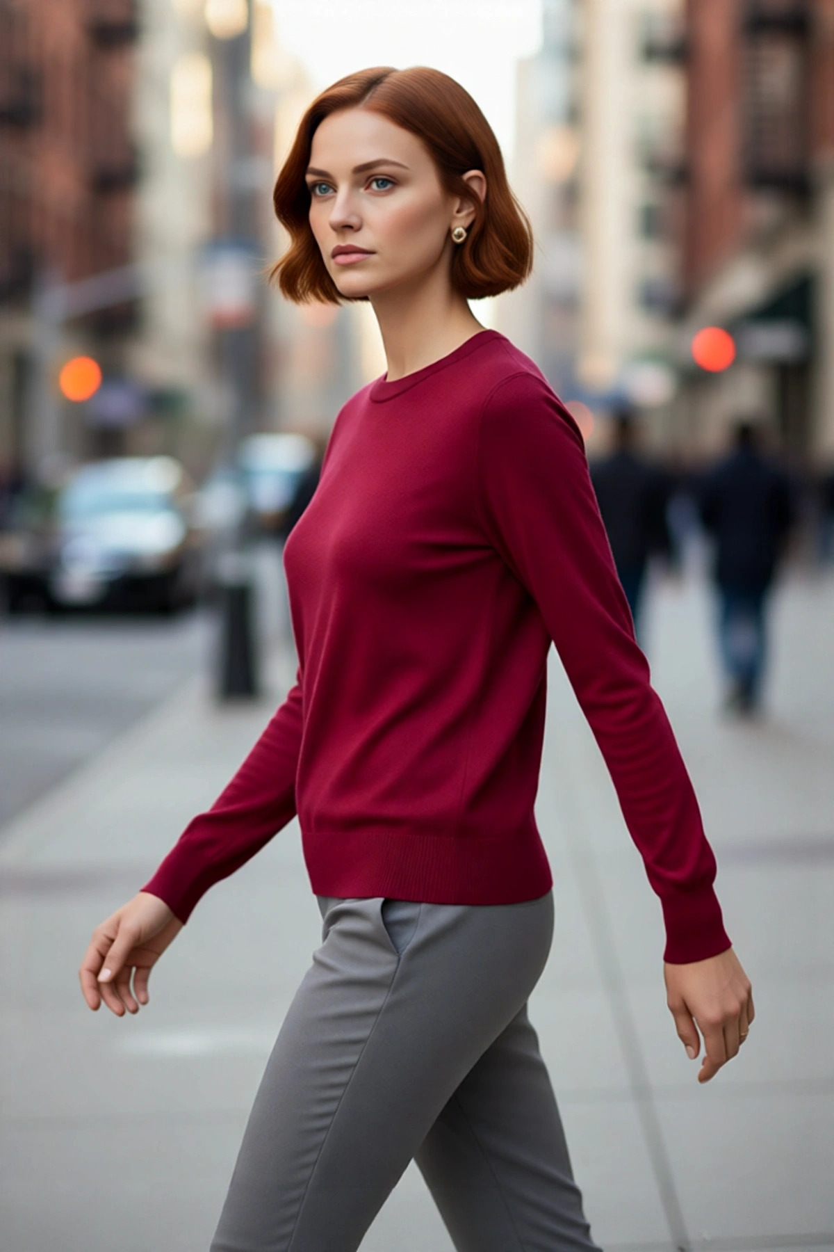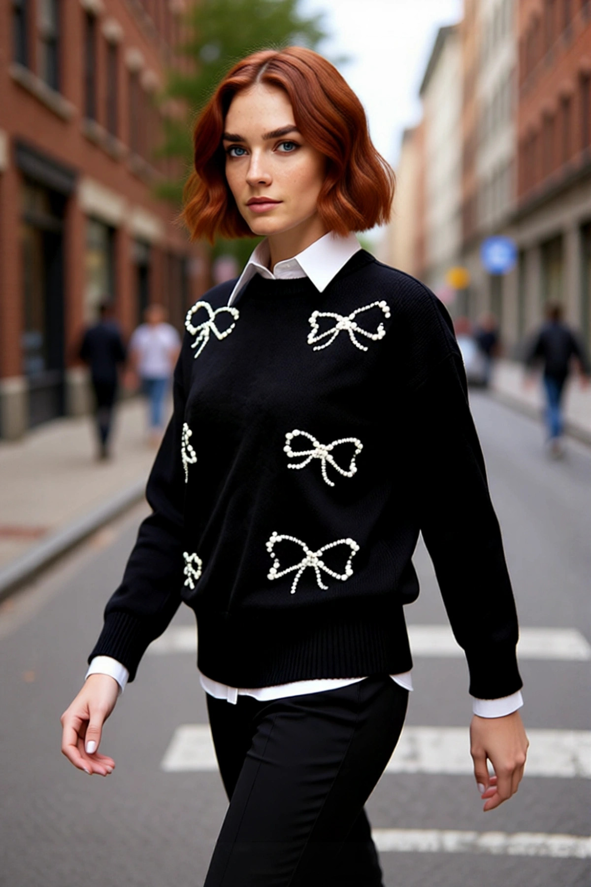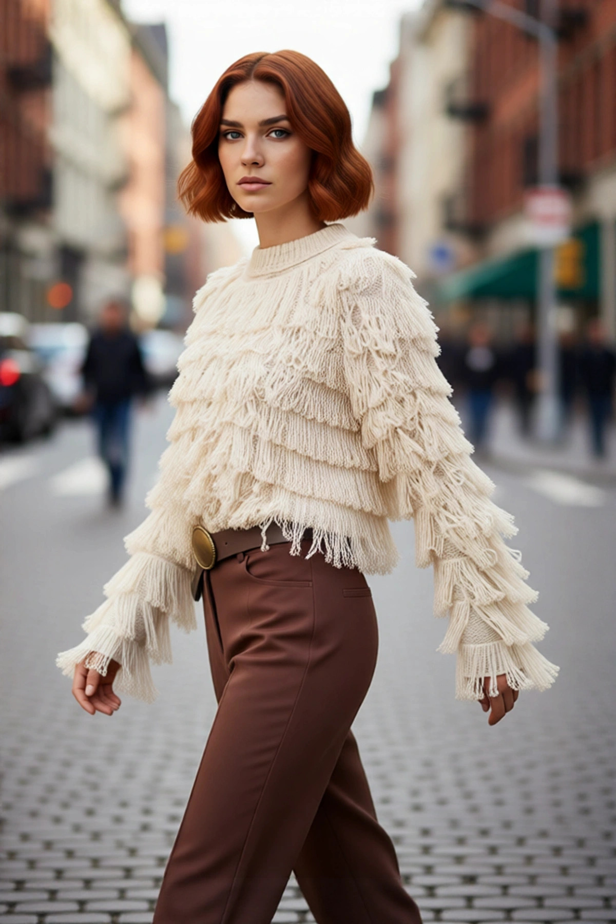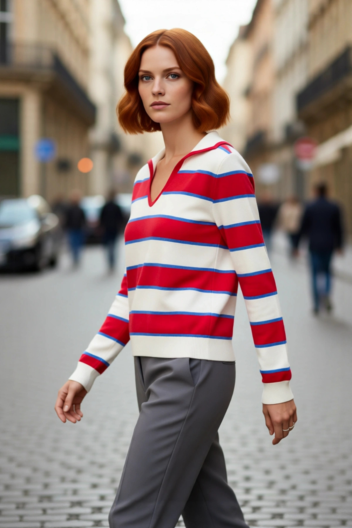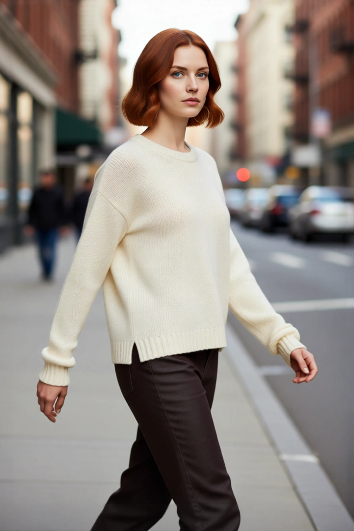 Kadınlara Özel Oversize Kesim Rahat Bisiklet Yaka Desenli Bej Gri Triko Kazak Kış Şıklığı Kaliteli