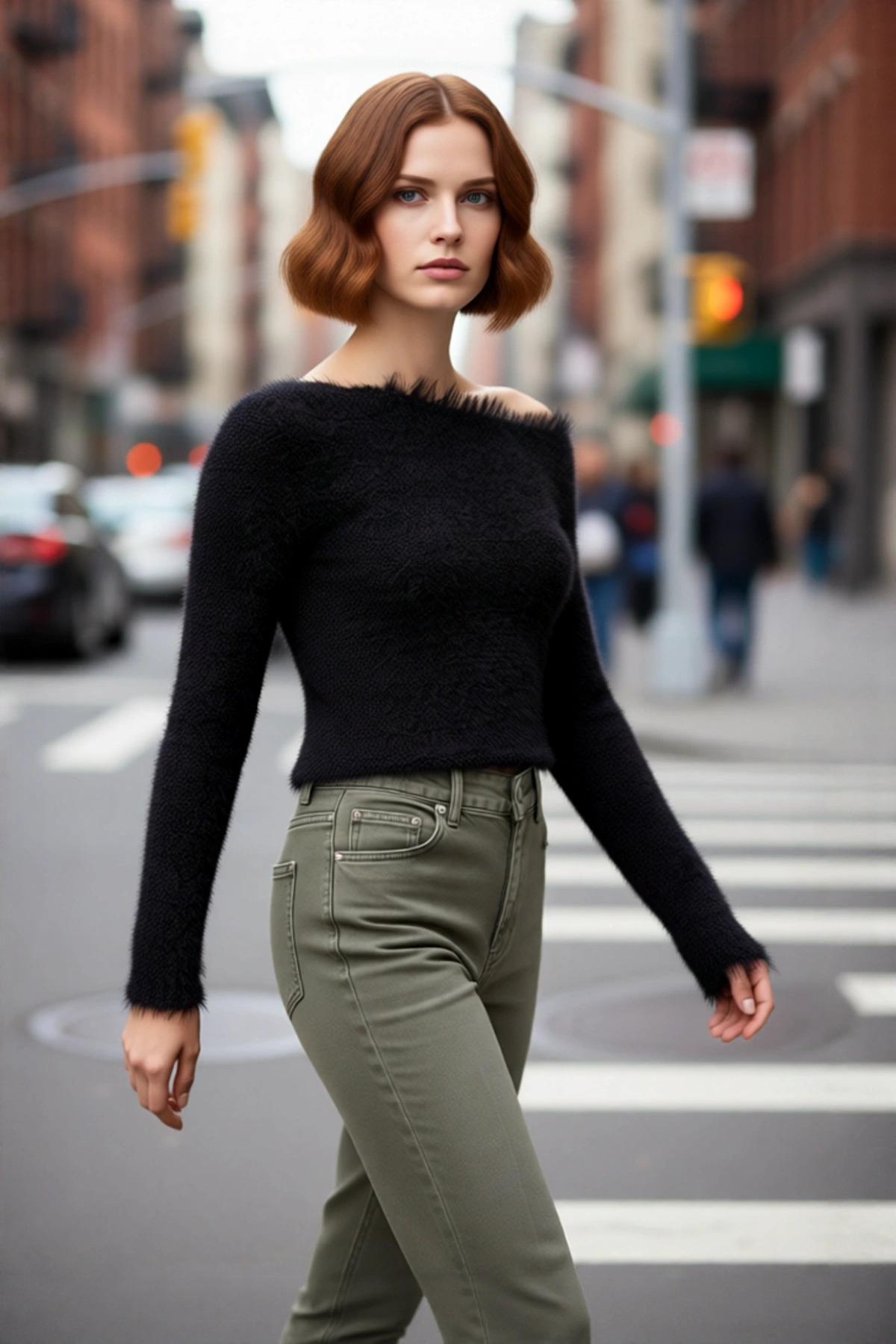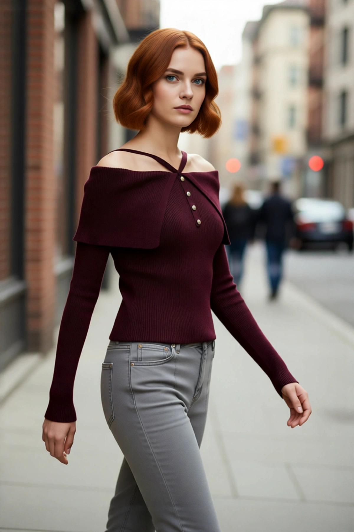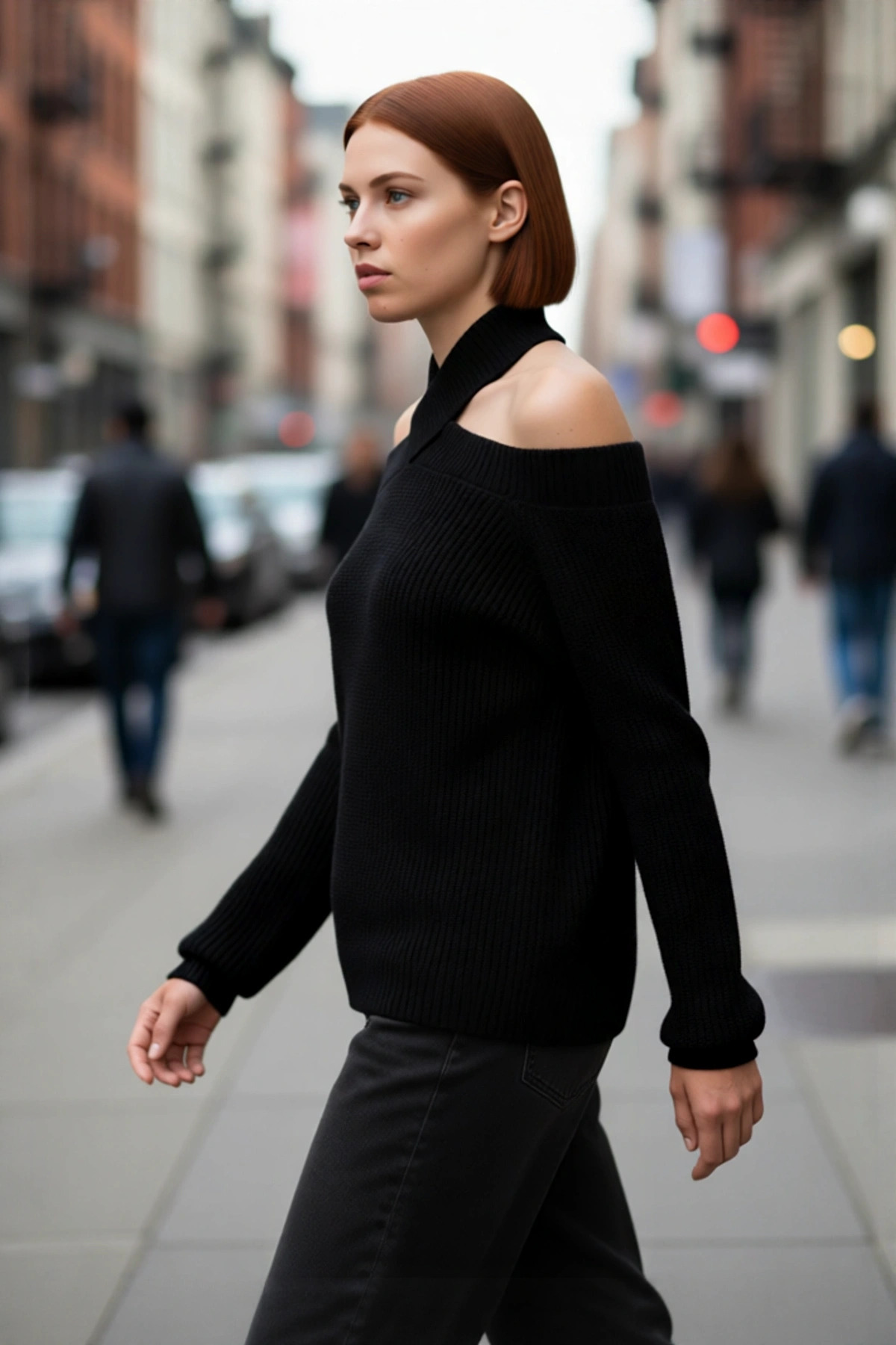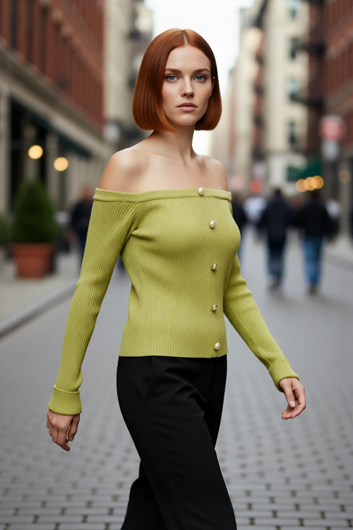 Kadın Şık Carmen Yaka Uzun Kollu Fitted Kesim Fitilli Triko Kazak İlkbahar Sonbahar Stili İçin İdeal