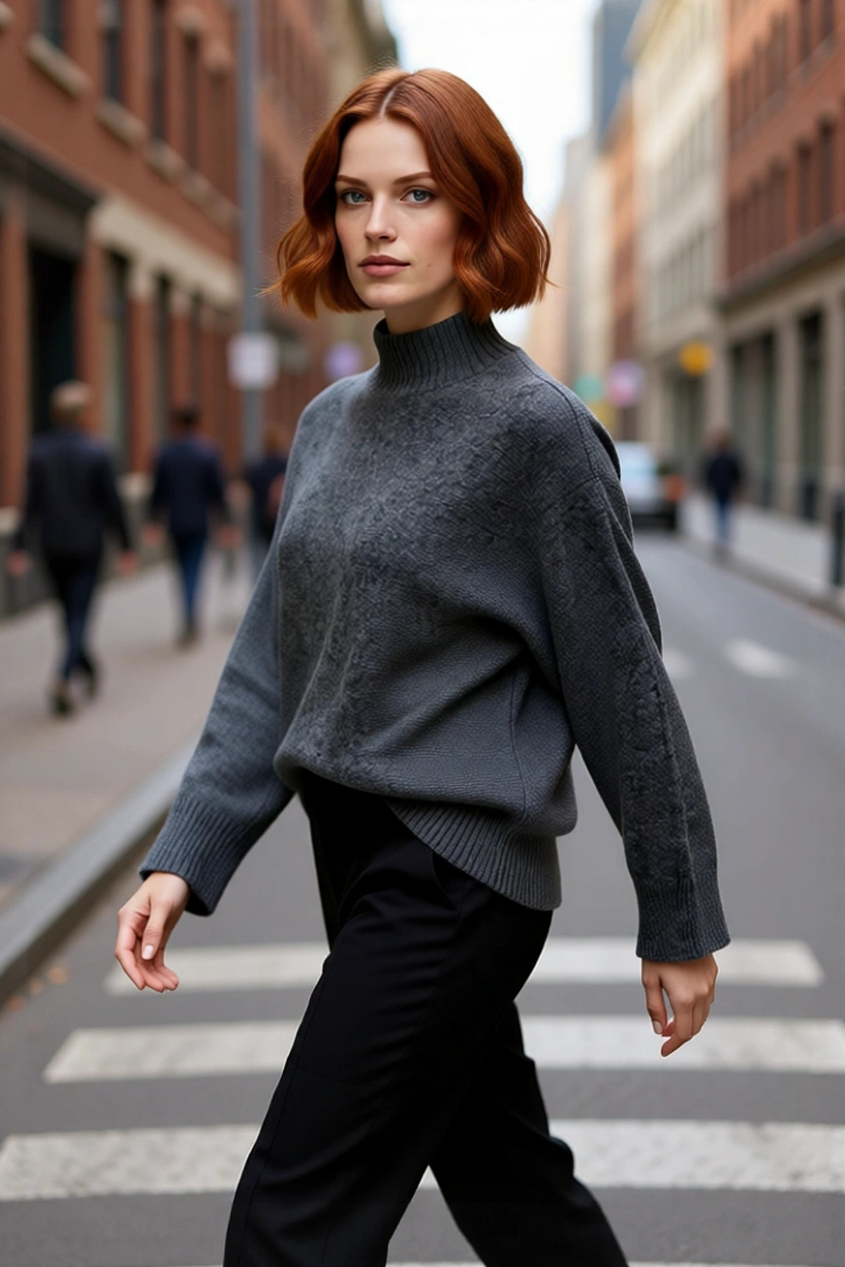 Kadın Geniş Kalıp Balıkçı Yaka Triko Kazak Soğuk Havalarda Şıklığı Ve Konforu Bir Arada Sunuyor