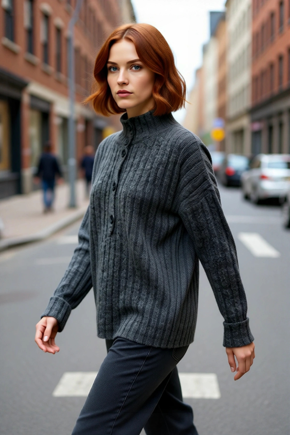 Kadın Oversize Dik Yaka Gri Akrilik Uzun Kollu Basic Triko Kazak Kışlık Kombinlerin Anahtarıdır