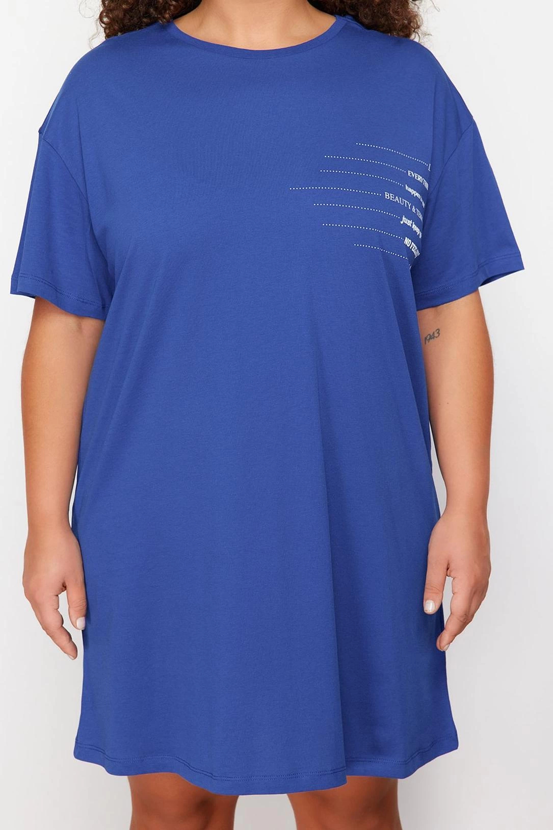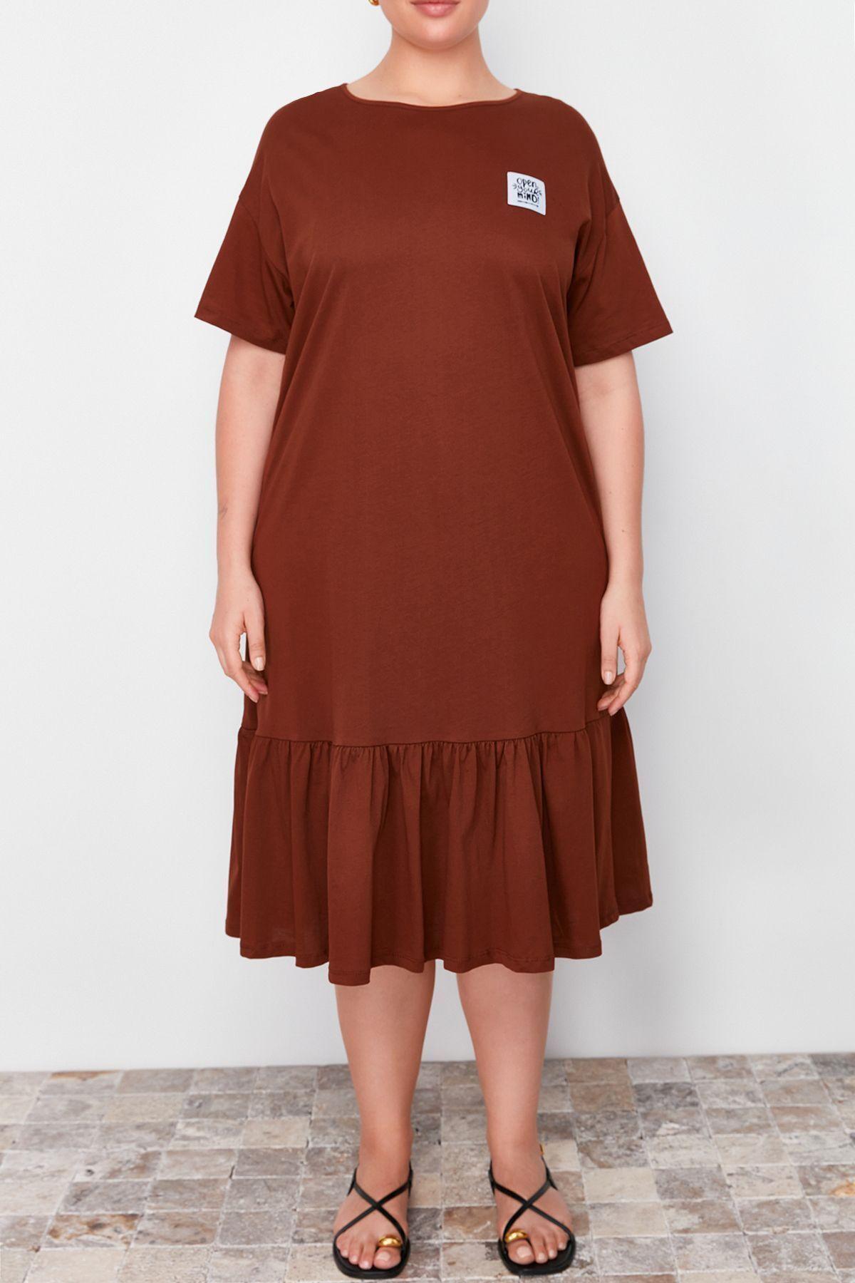 Moda Rahat Günlük Süprem Örme Bisiklet Yaka Kısa Kol T-Shirt Elbise Mini Boy Büyük Beden Elbise