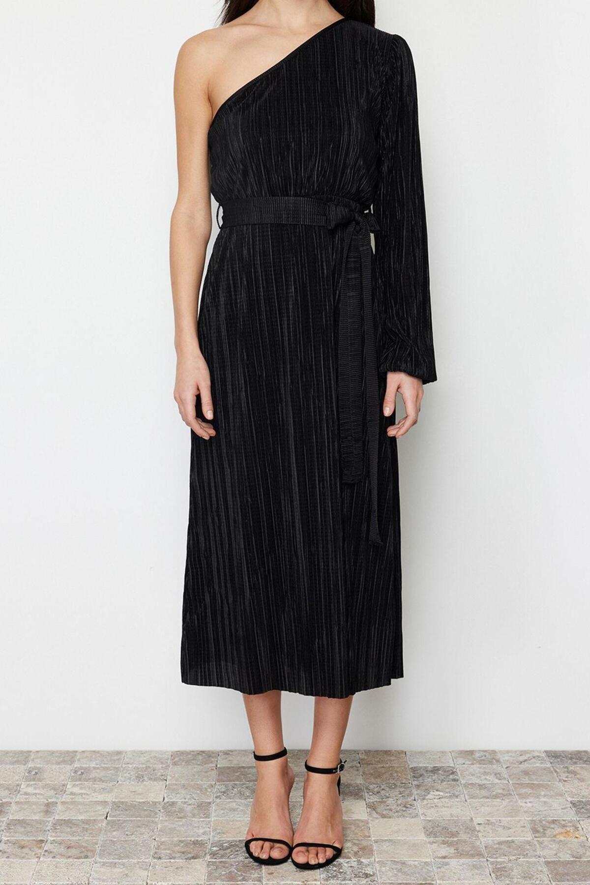Astarlı Şifon Halter Yaka Kuşaklı Midi Elbise Yazlık Rahat Konforlu Kesim Günlük Kullanım İçin