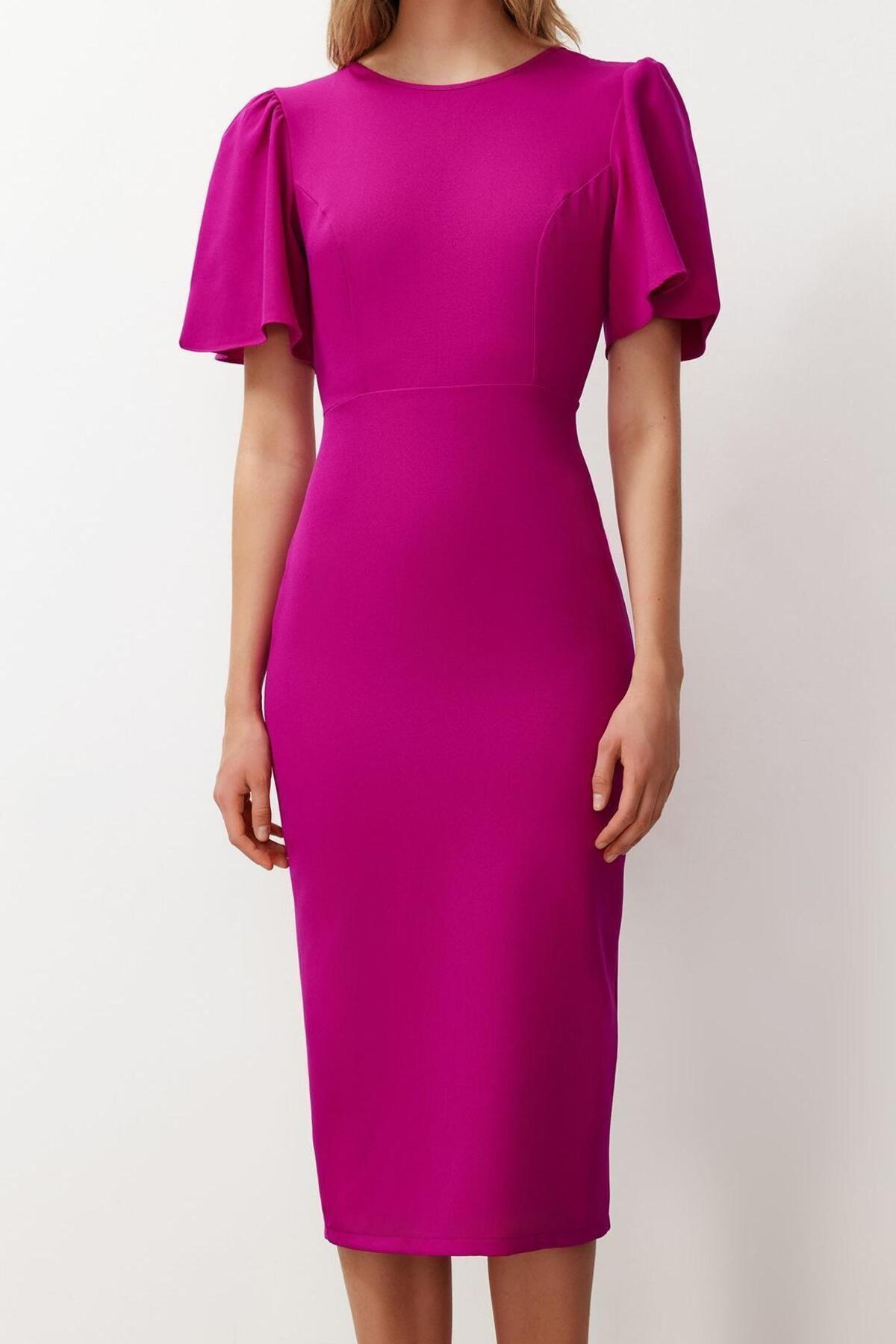 Şık Kadın Kısa Kollu Midi Elbise Polyester Elastan Kumaş Premium Kalite Trend Tasarım Seçkin Malzeme