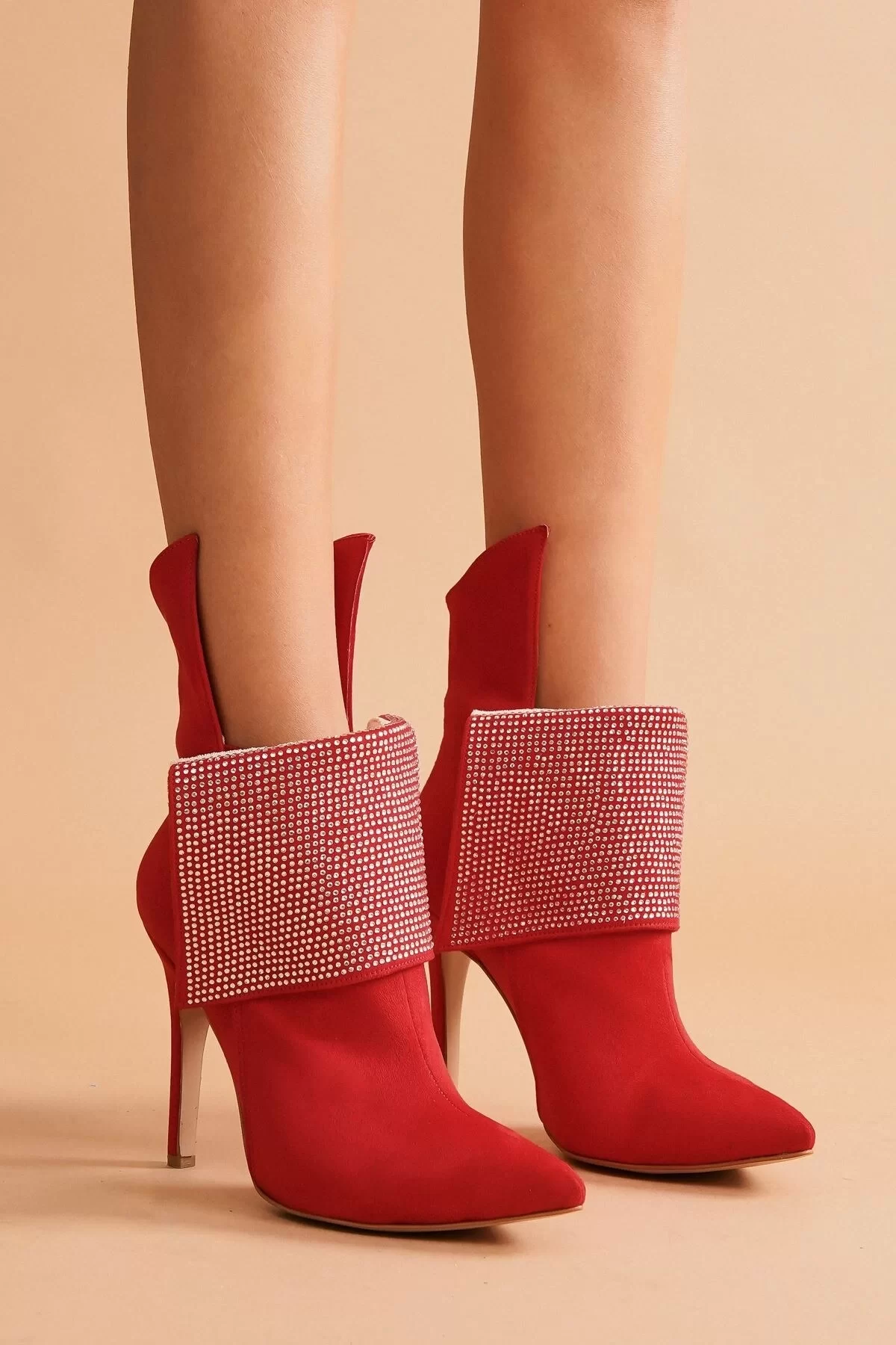 Kadın Moda Yaka Taşlı Sivri Burun Bot Şık ve Zarif Abiye Ayakkabı