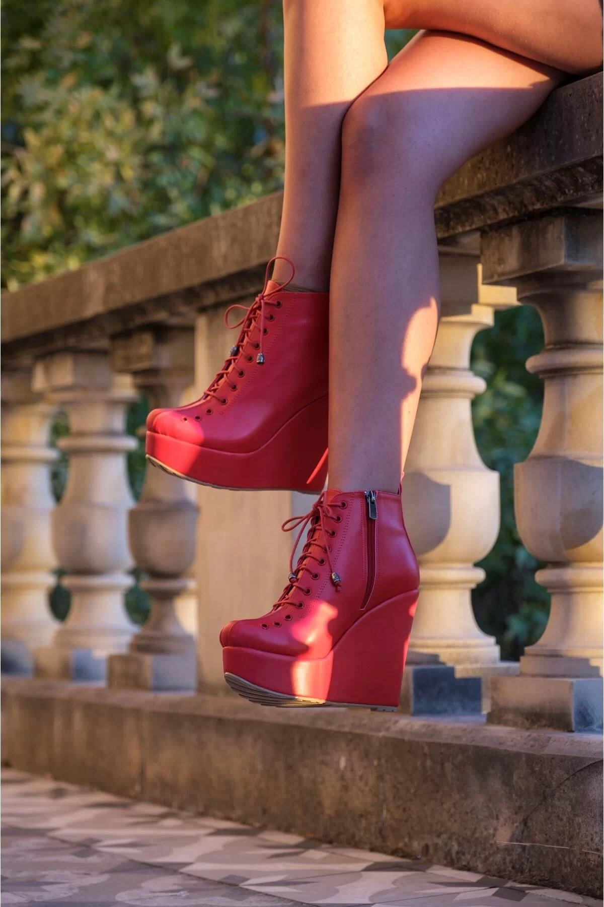 Kadın Moda Dolgu Topuk Bağcıklı Bot Şık ve Zarif Abiye Ayakkabı