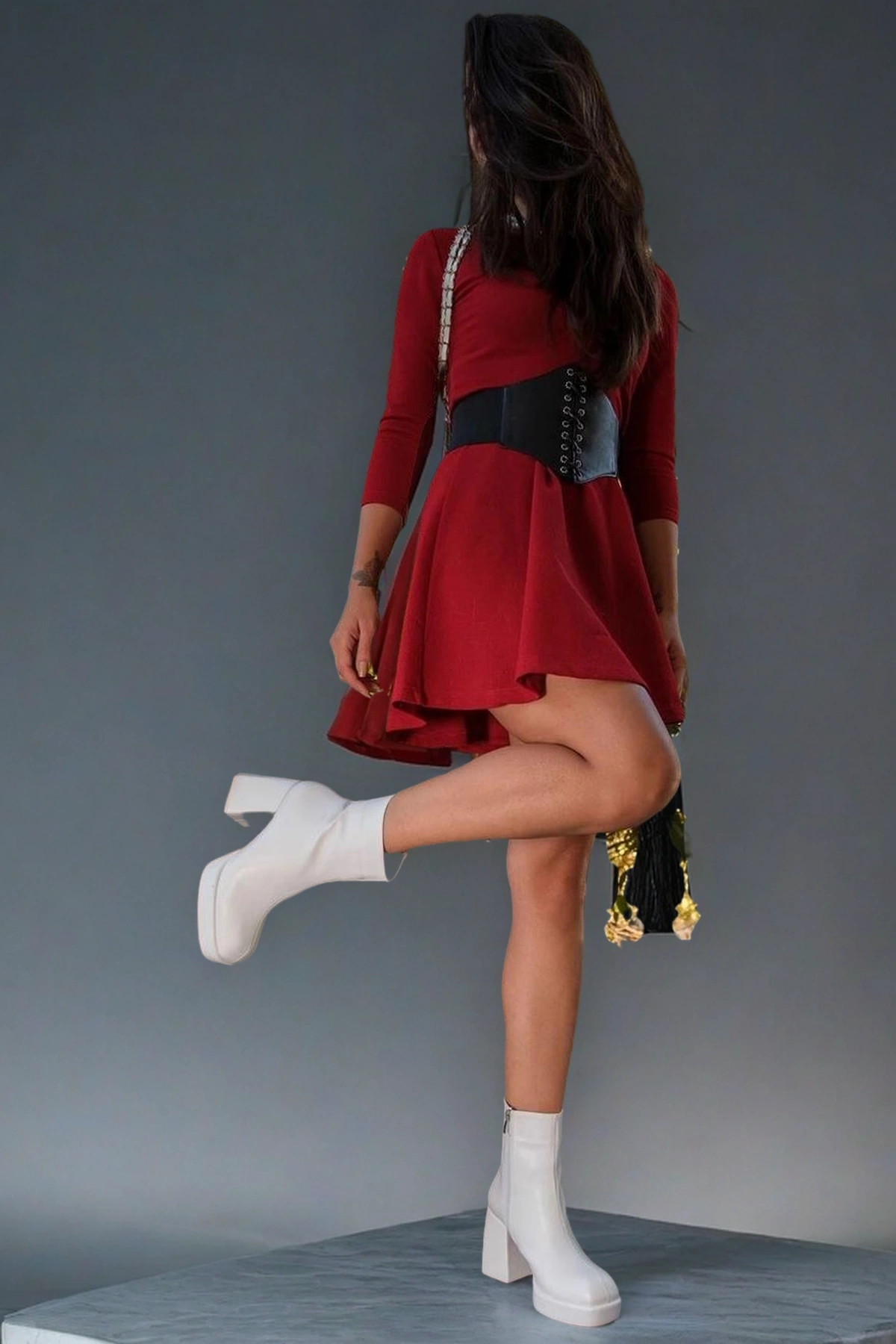 Kadın Moda Çift Platform Kalın Topuk Bot Şık ve Zarif Abiye Ayakkabı
