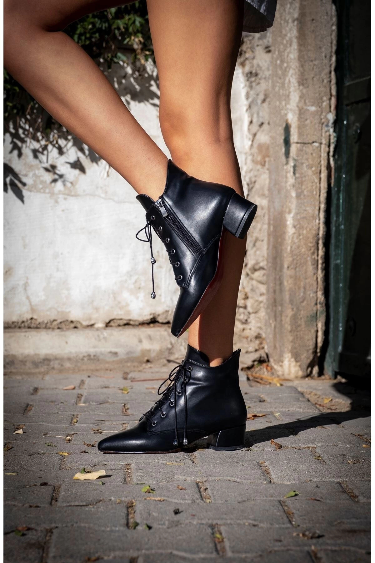 Kadın Moda Kısa Topuklu Bağcıklı Bot Şık ve Zarif Abiye Ayakkabı