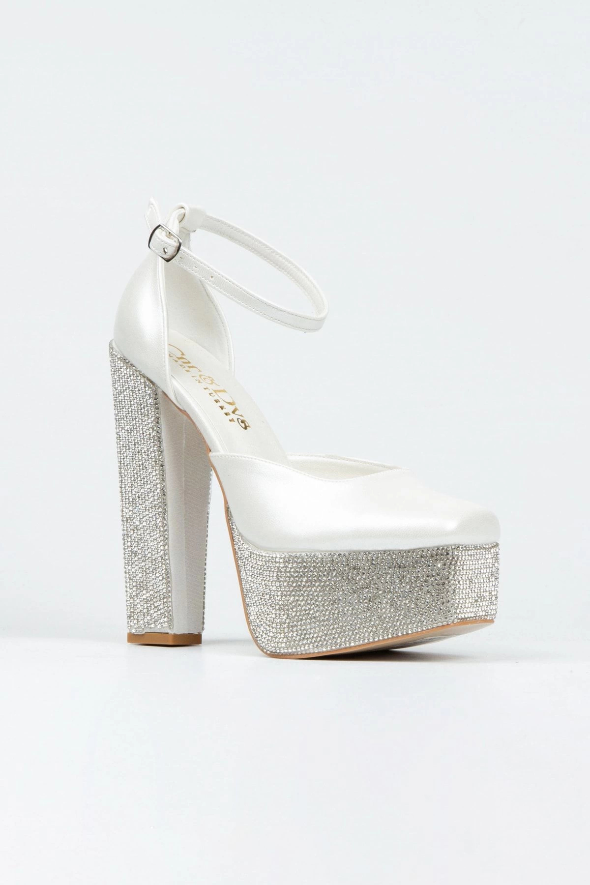 Beyaz Çınar Kadın Dolgu Topuklu Ayakkabı Kadın Topuklu Abiye Ayakkabı Şık Gece Ayakkabısı
