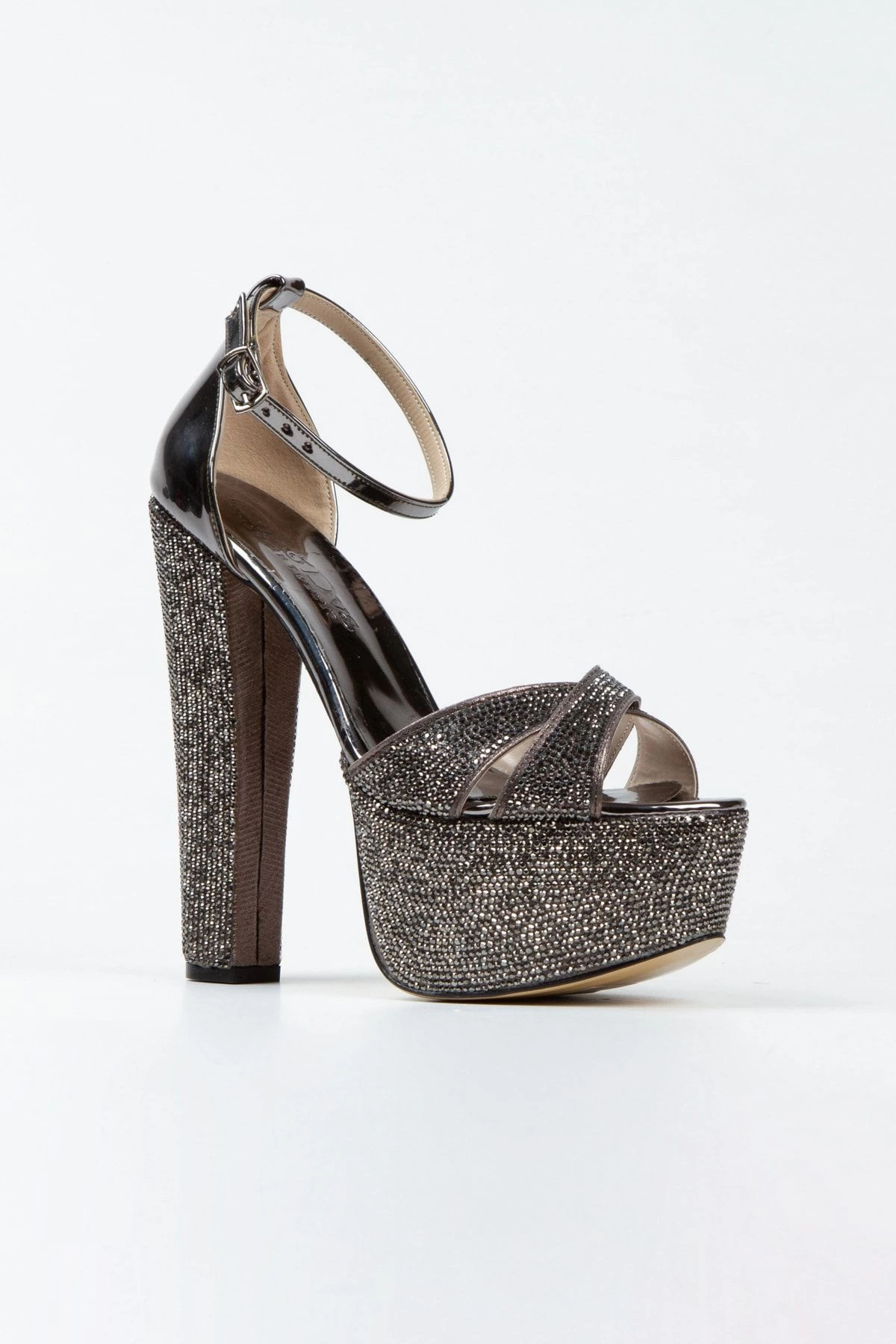 Platin Ayna Full Taş Klasik Köşe Kalıplı Kalın Topuklu Kadın Abiye Ayakkabı Kadın Topuklu Şık