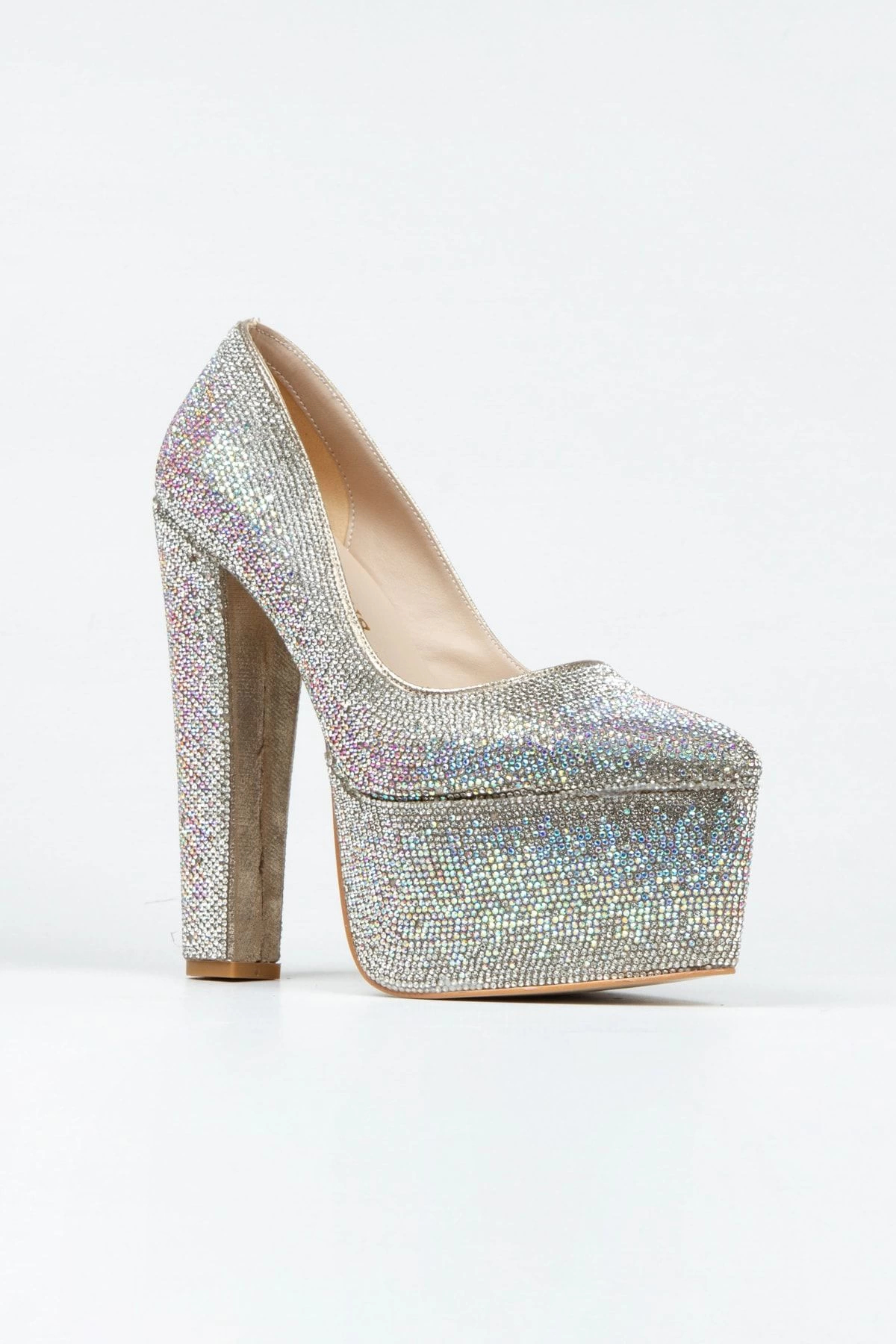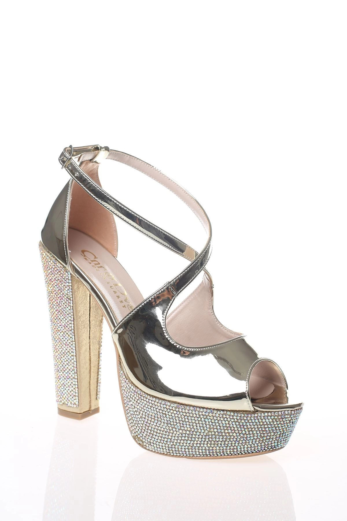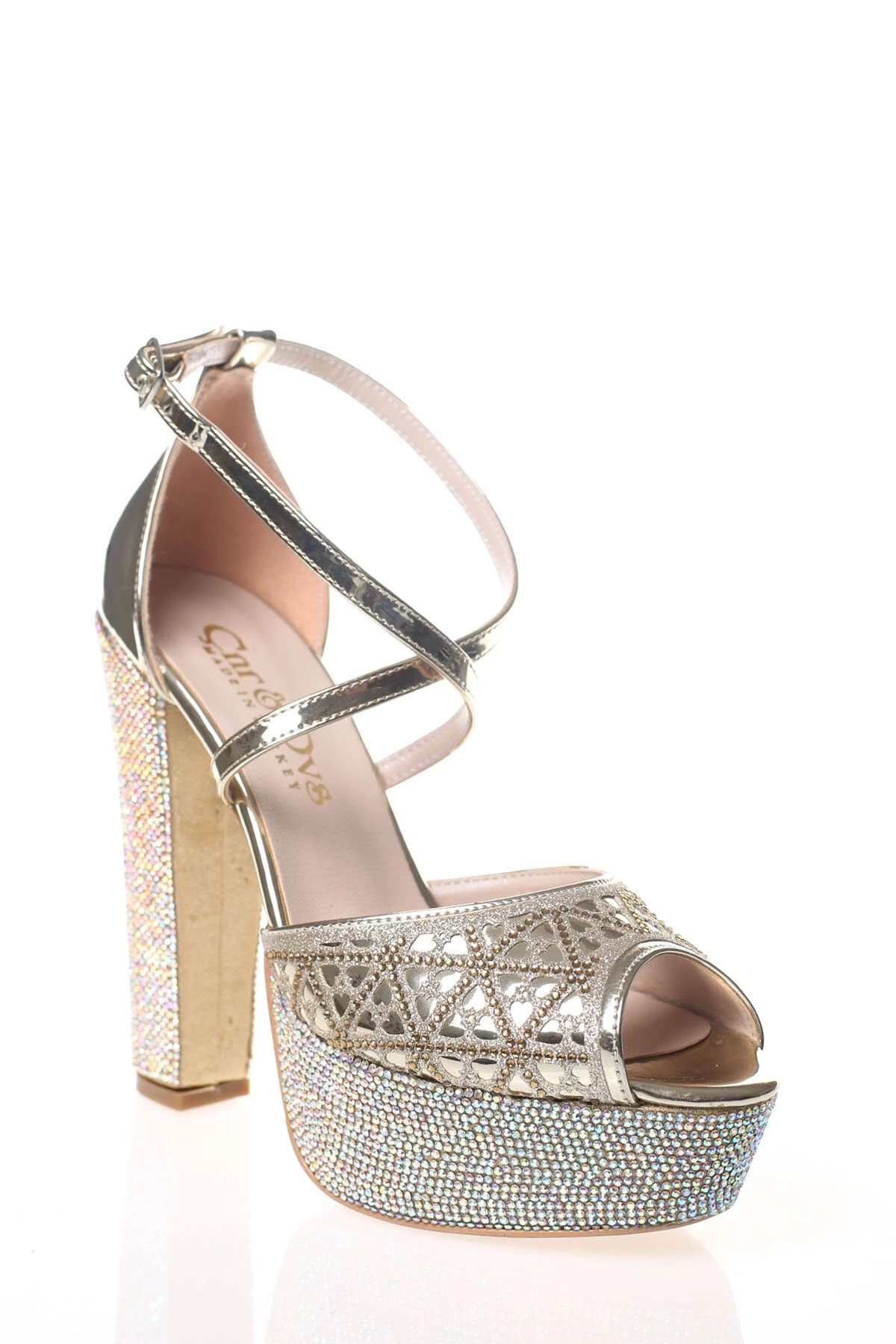 Gümüş Sultan Çift Renk Taşlı Çapraz Model Klasik Topuklu Platformlu Kadın Abiye Ayakkabı Şık