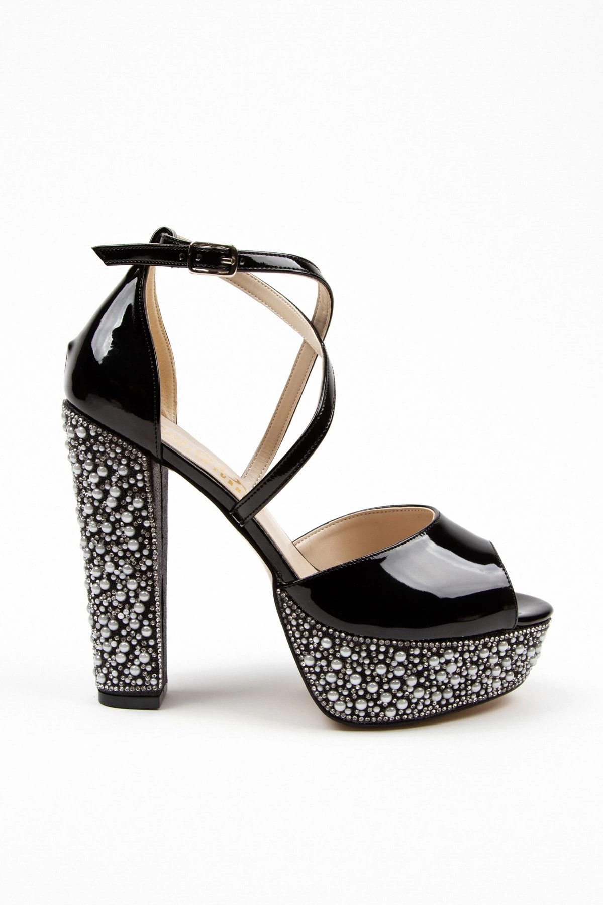 Siyah Rugan Ökçe Poli Inci Topuklu Kadın Abiye Ayakkabı Kadın Topuklu Şık Gece Ayakkabısı
