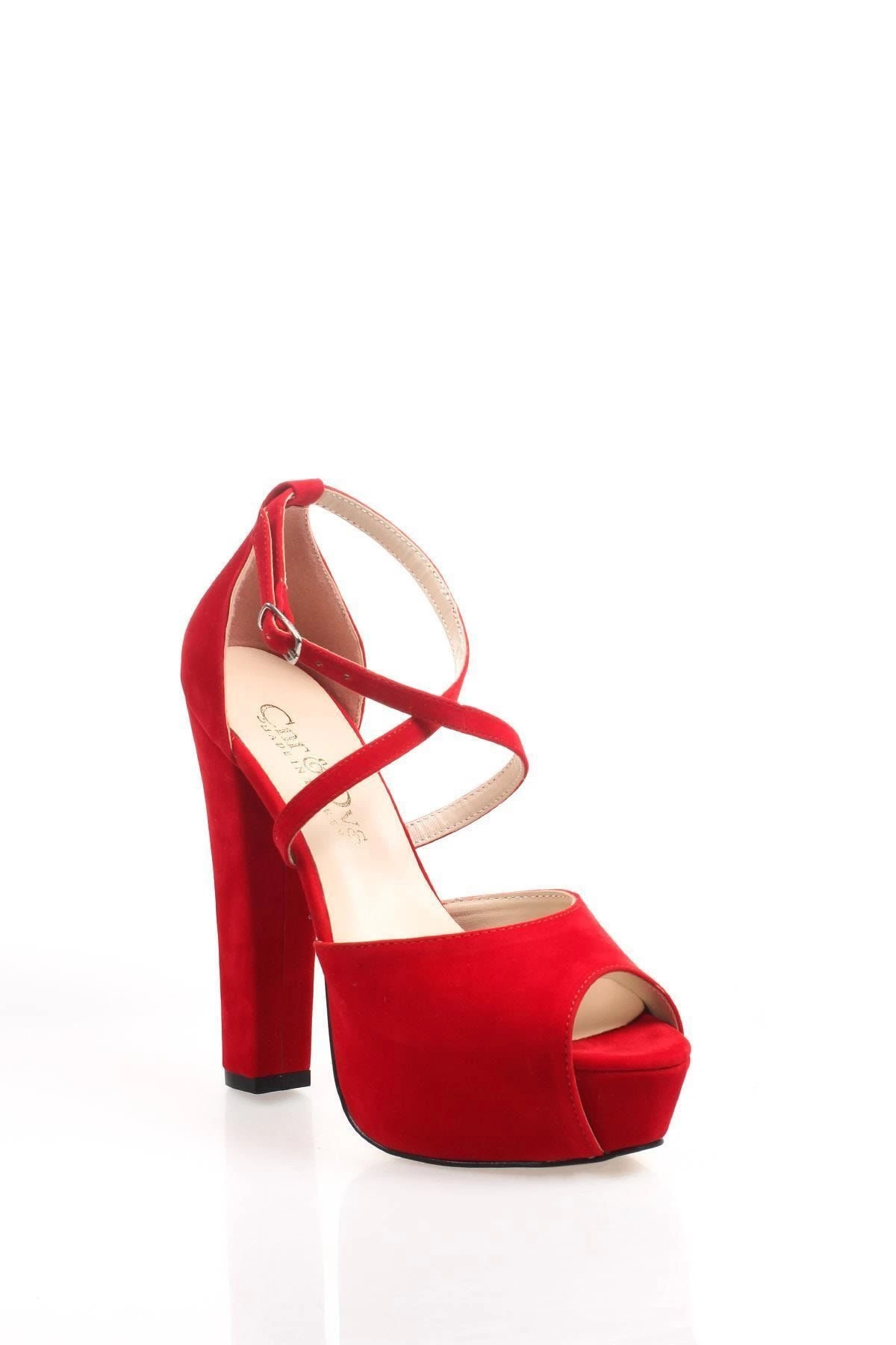 Kırmızı Süet Kadın Abiye Ayakkabı Kadın Topuklu Şık Gece Ayakkabısı Zarif Tasarım Yüksek Topuk
