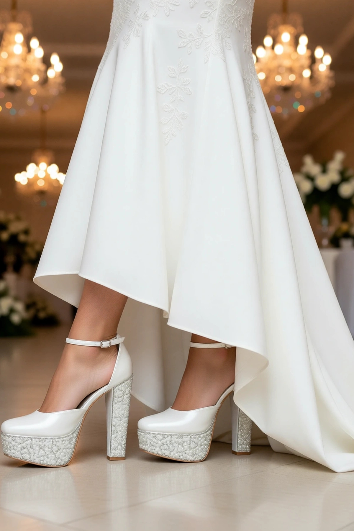 Kadın Beyaz Abiye Ayakkabı Kadın Topuklu Şık Gece Ayakkabısı Zarif Tasarım Yüksek Topuk