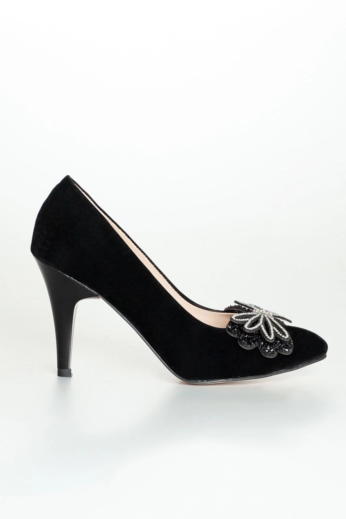 Siyah Süet Taşlı Kadın Topuklu Ayakkabı Abiye Ayakkabı Şık Gece Ayakkabısı Zarif Tasarım