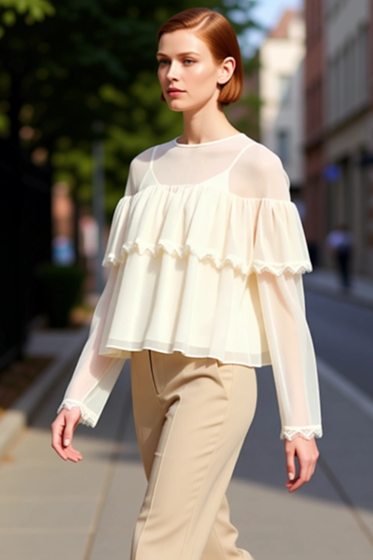 Kadın Ekru Viskon Ribana Basic Bluz Asimetrik Yaka Cool & Comfort Tarzı ile İlkbahar ve Sonbahar