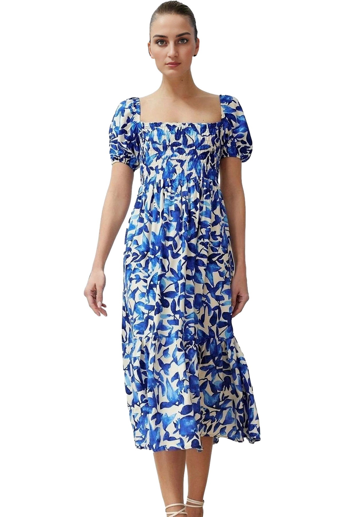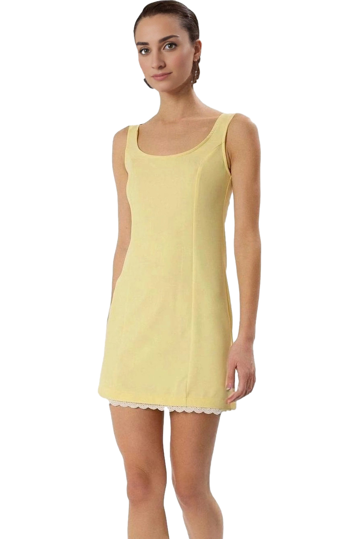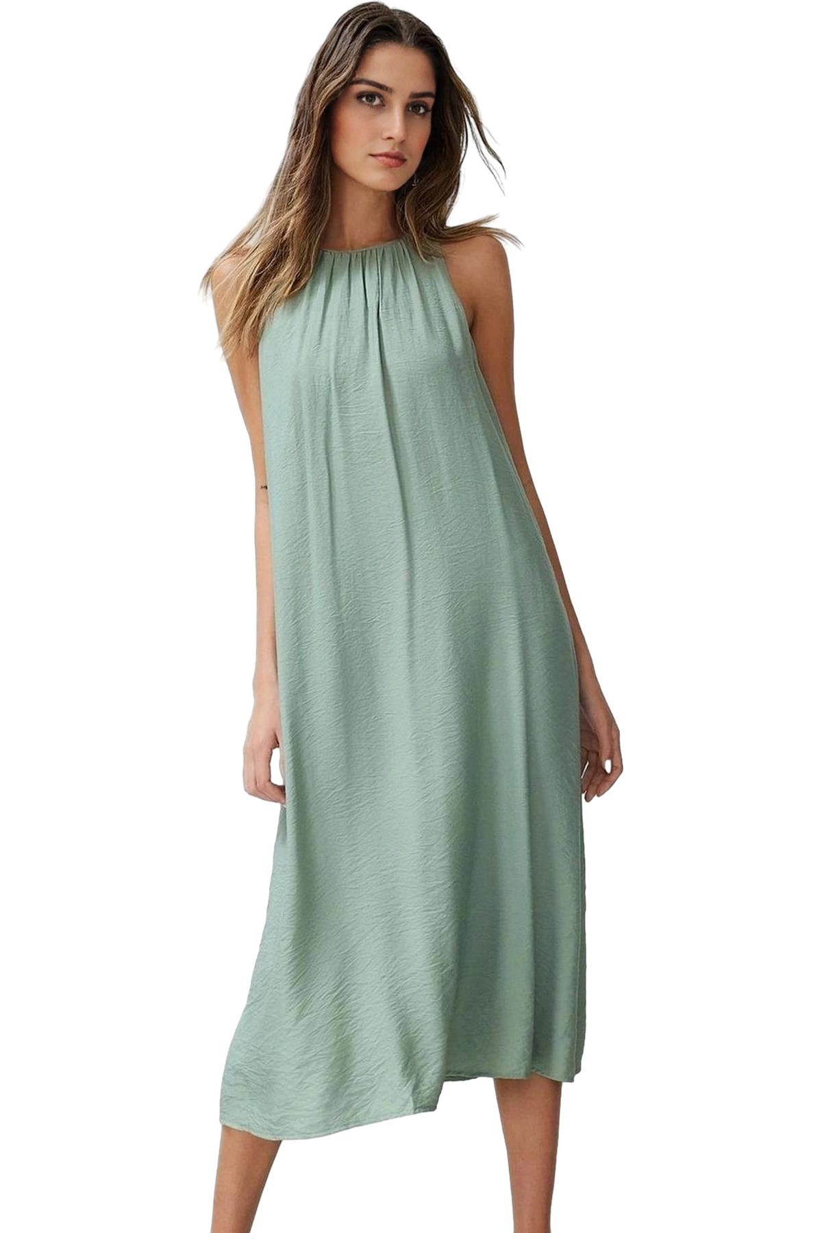 Yazlık Mini Elbise A Kesim Degaje Yaka Dokuma Kumas 89cm Boy Günlük Kullanım İçin Özenle Seçilmiş