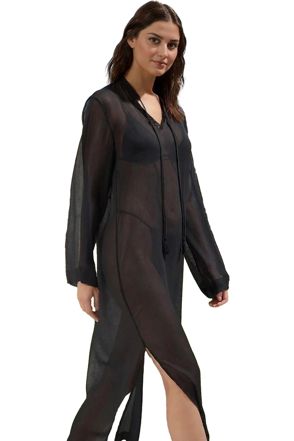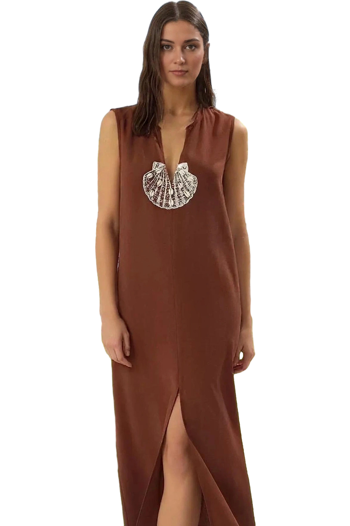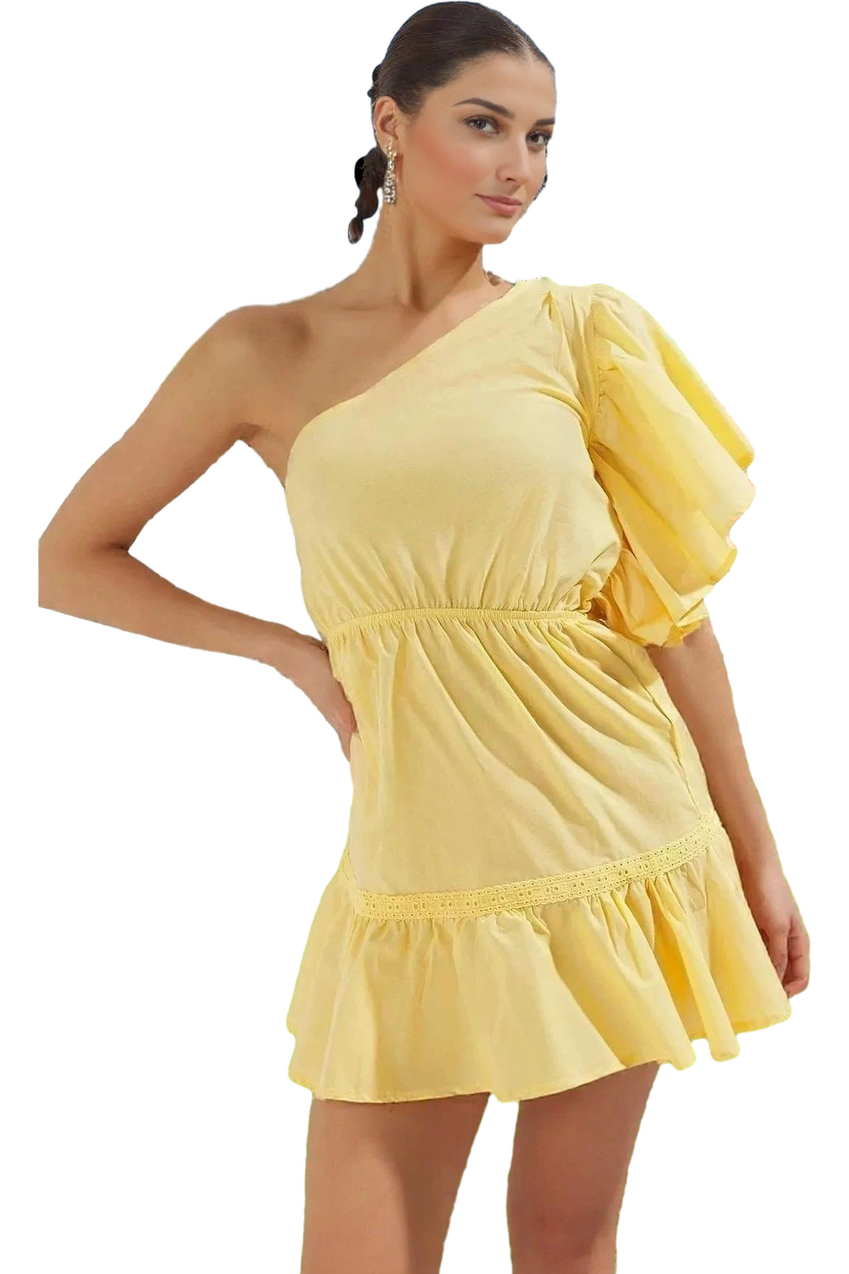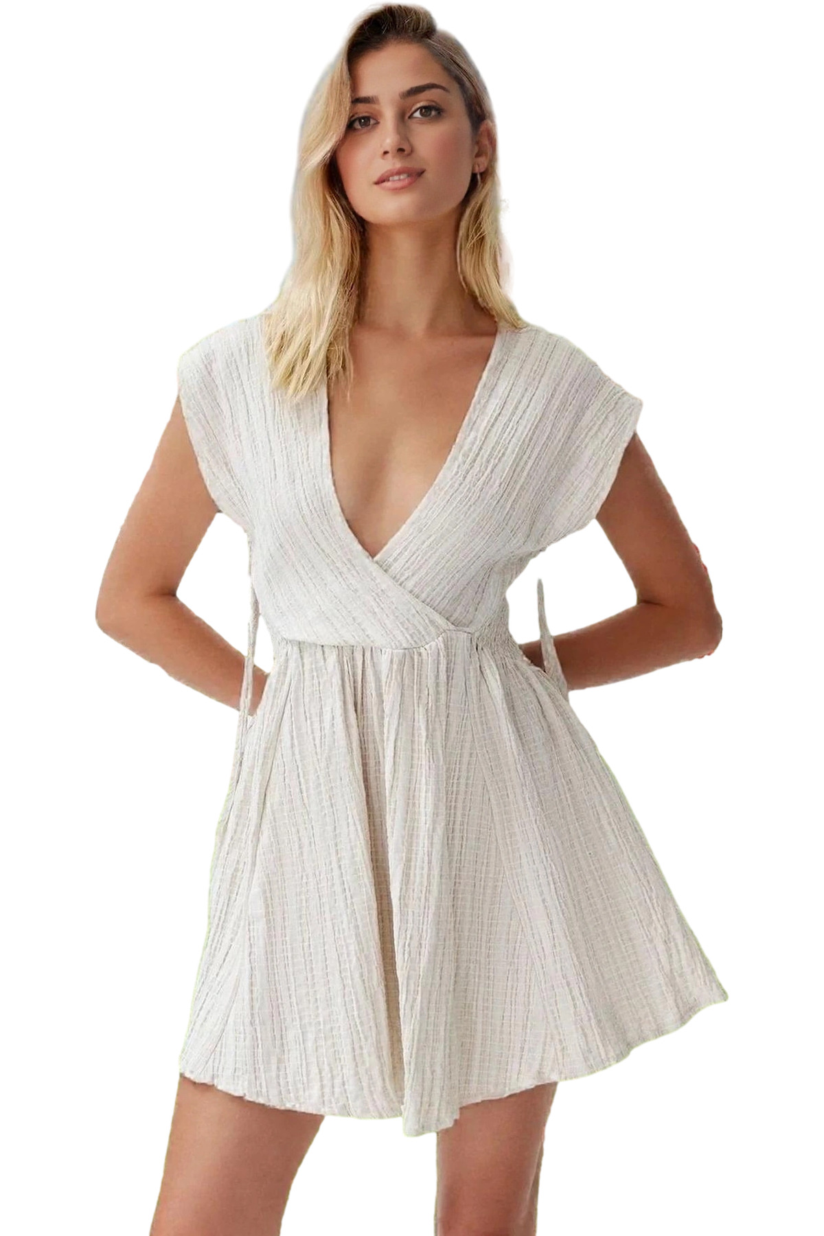Keten Karışımlı V Yaka Mini Elbise Cut Out Detaylı Yazlık Elbise Profesyonel Görünüm Trend Tasarım