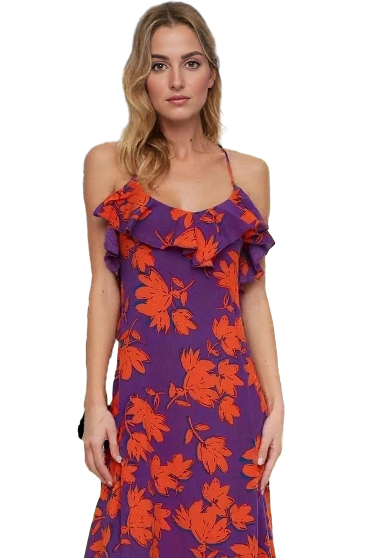 Yazlık Kolsuz V Yaka Maxi Elbise Çiçek Desenli Viskoz Kumaş Günlük Kullanım İçin Seçkin Malzeme