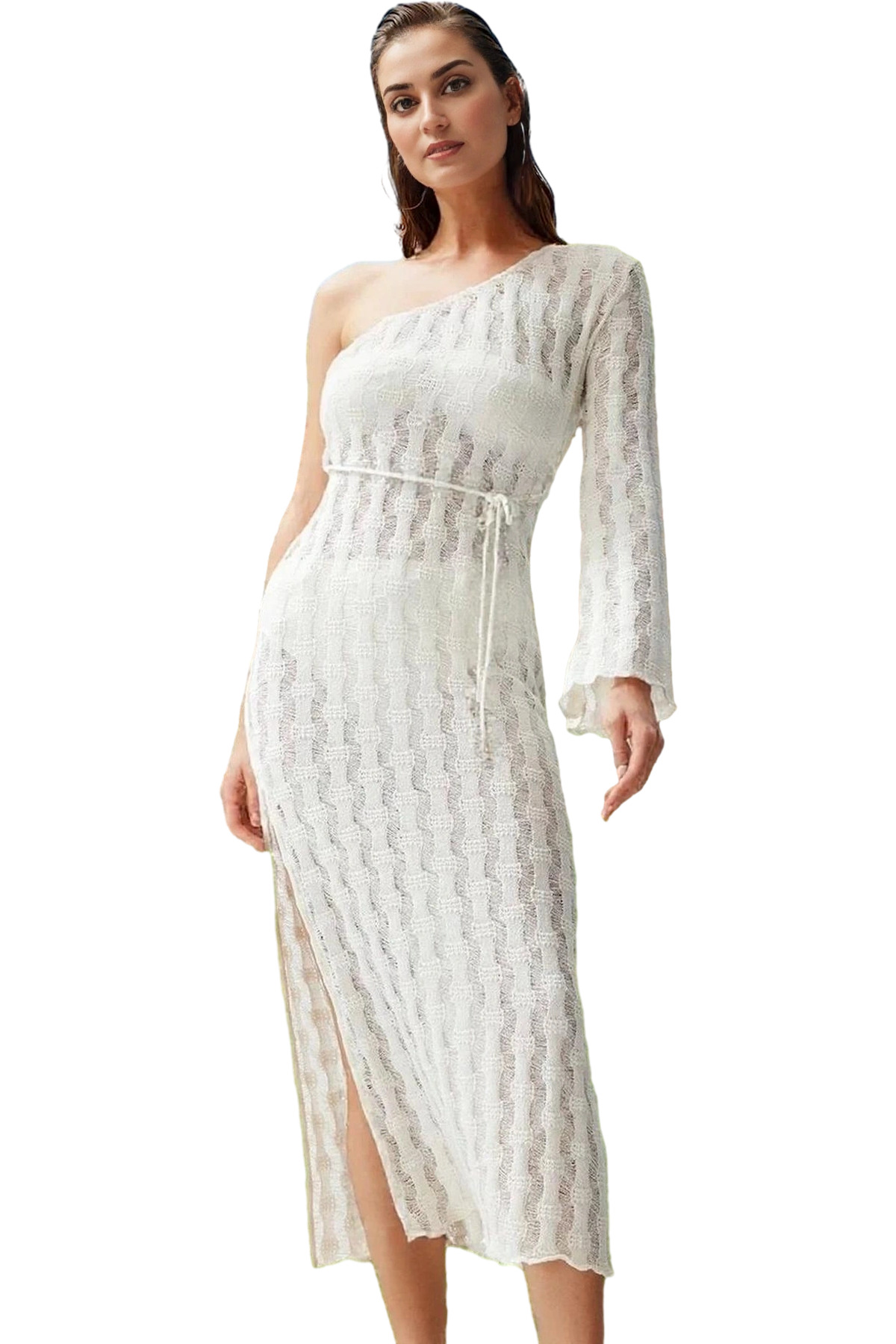 Rahat Triko Maxi Elbise Tek Omuzlu Plaj Şıklığı Kemer Detay Günlük Kullanım İçin Premium Kalite