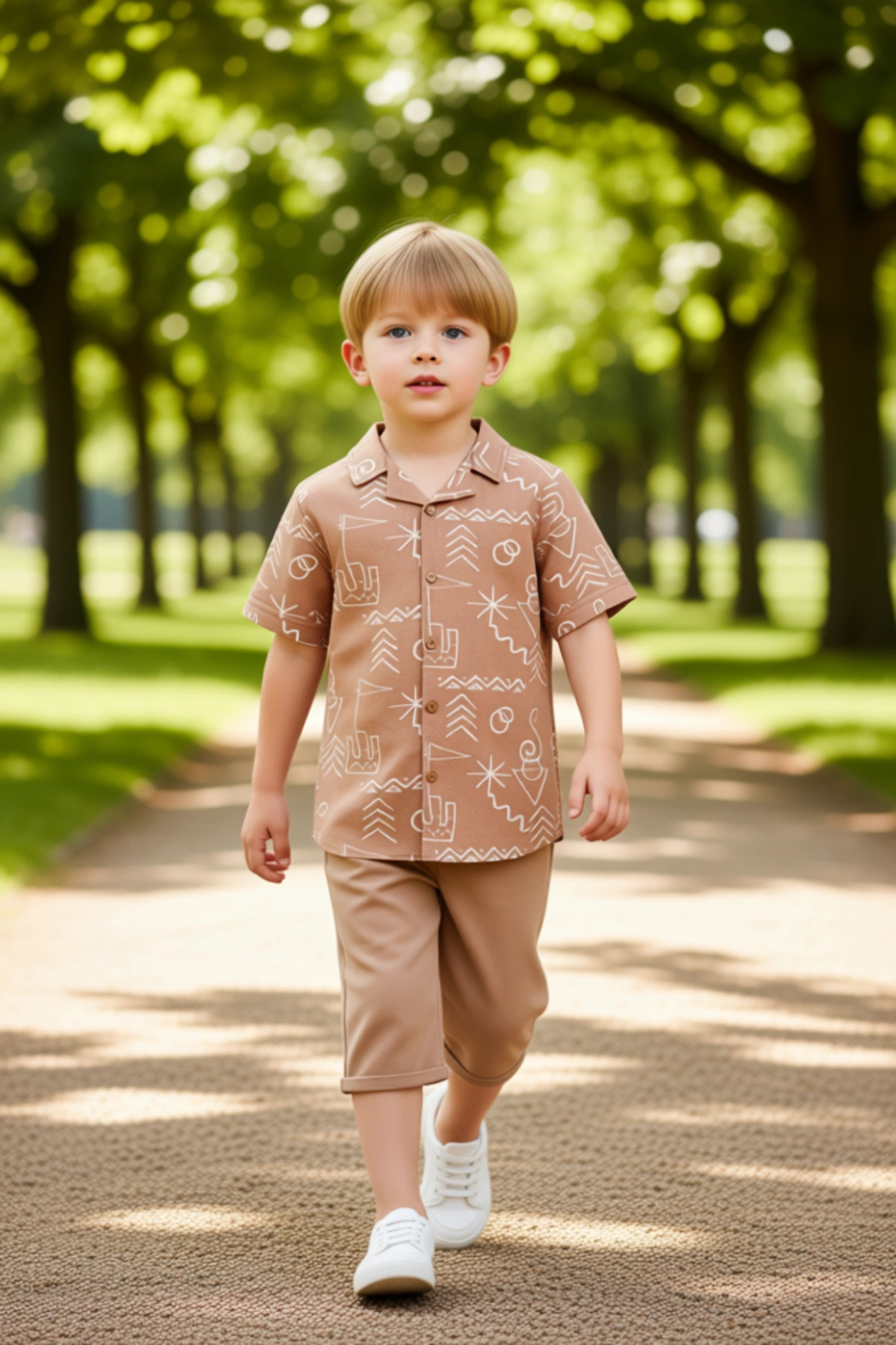 Erkek Çocuk Pamuklu Gömlek ve Pantolon Seti Yazın Enerjisi ve Doğanın Neşesi Kaliteli Şık Rahat