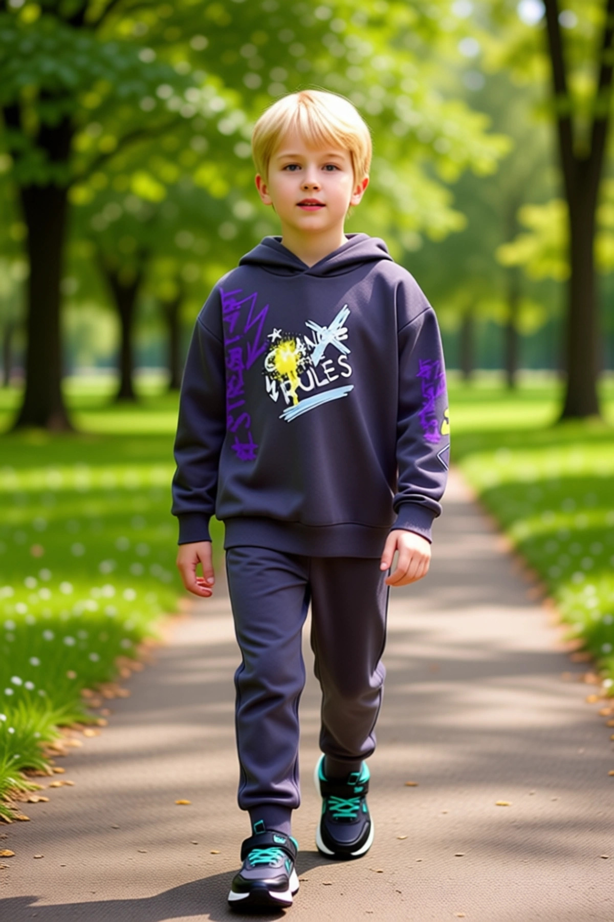 Çocuklar İçin Yumuşak Pamuk Karışımlı Oversize Sweatshirt ve Eşofman Altı Seti Kaliteli Şık
