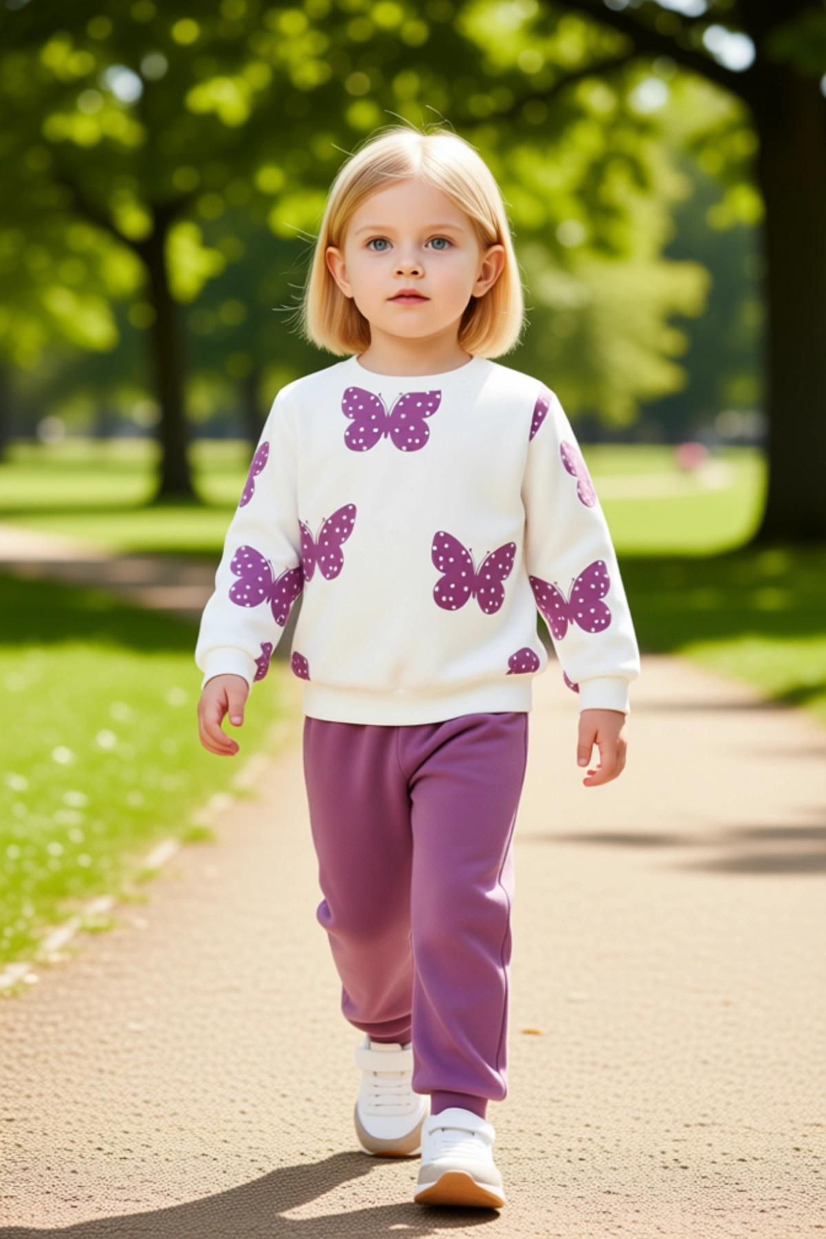Kız Çocuk Pamuklu Örme Kelebek Desenli Bisiklet Yaka Üst ve Ribana Tayt Seti Kaliteli Şık Rahat