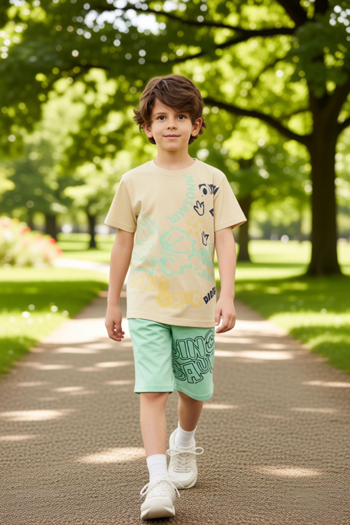 Genç Erkek Pamuklu Oversize Bisiklet Yaka Baskılı T shirt Ve Şort Kombinasyonu Kaliteli Şık