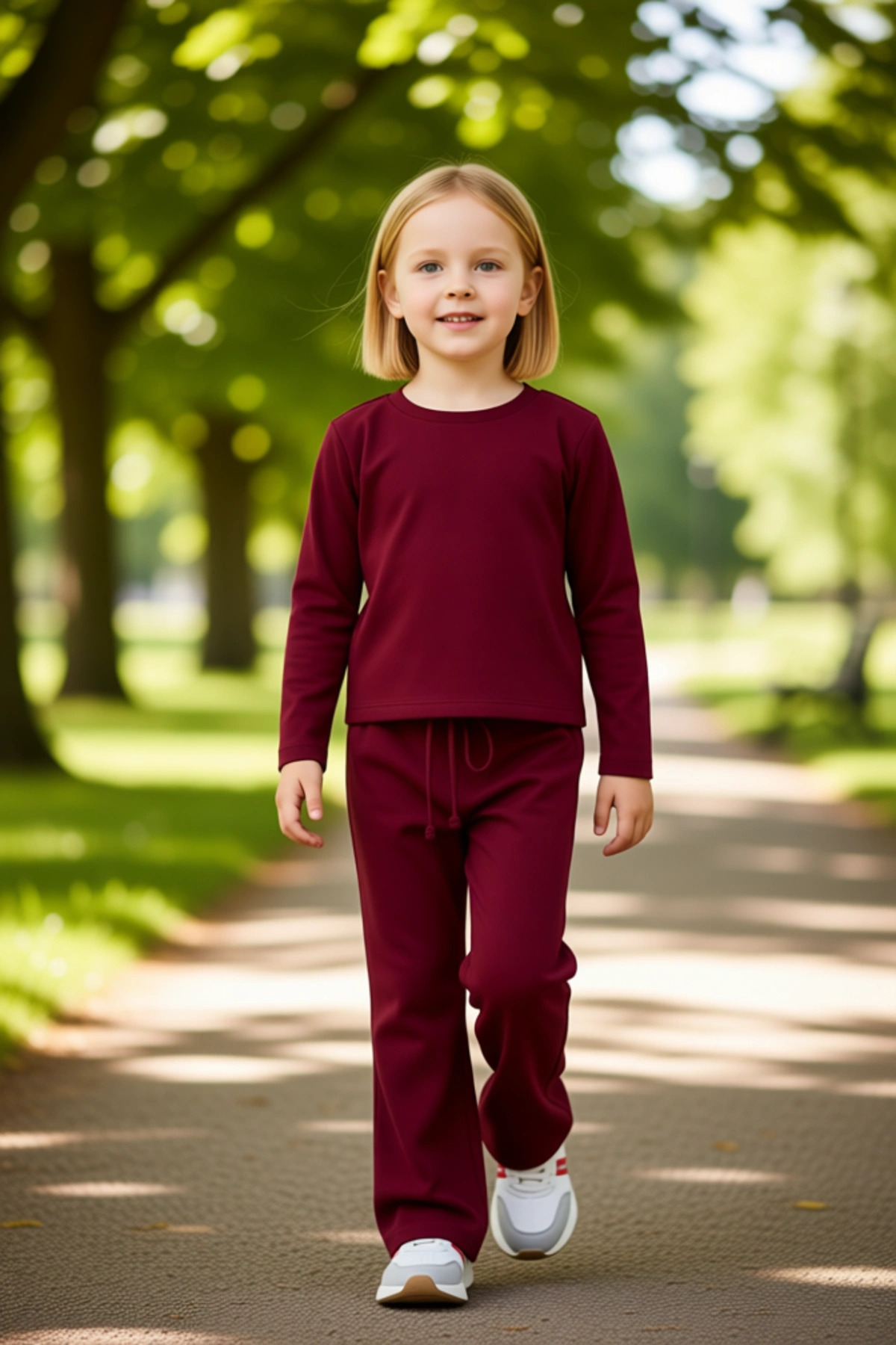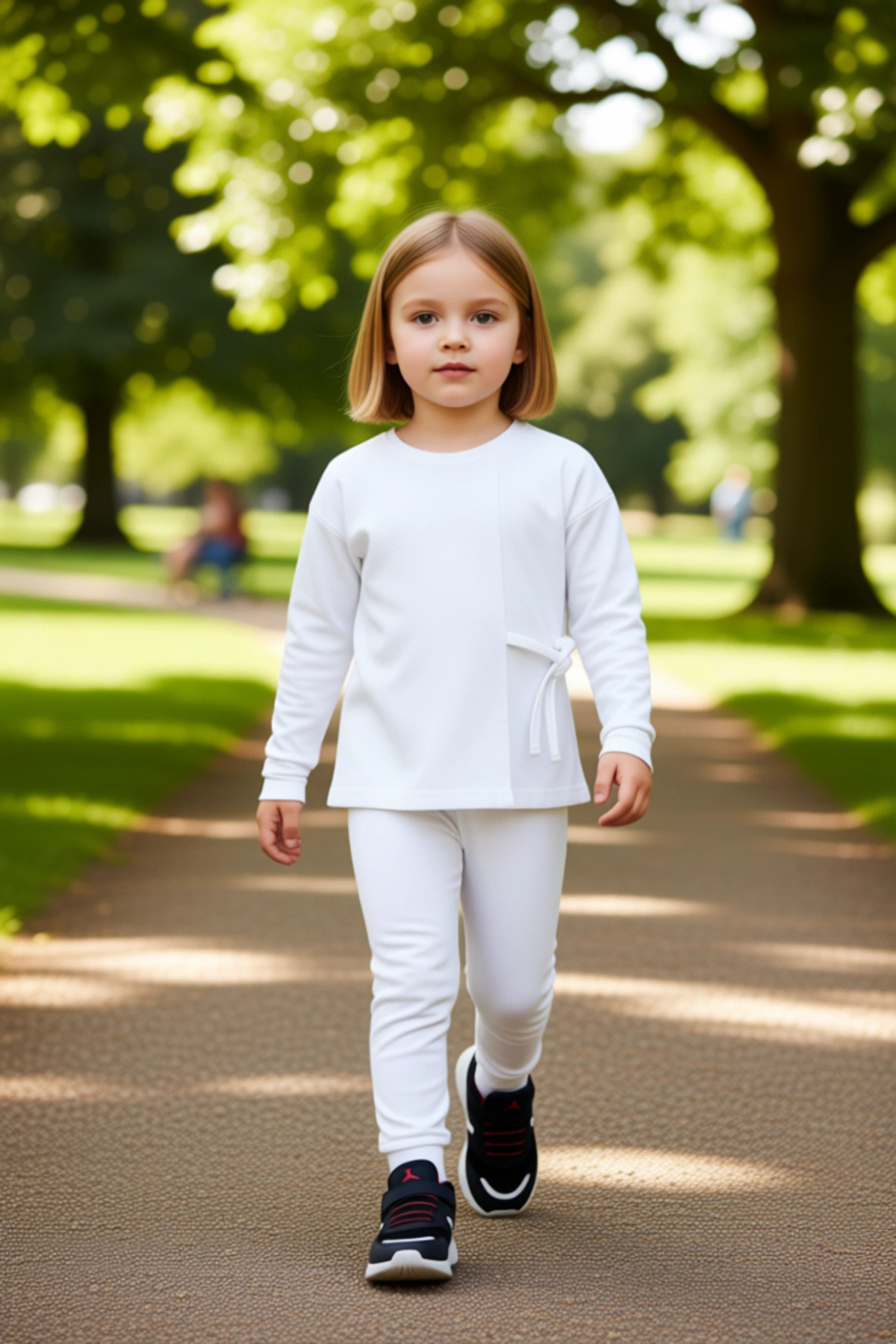 Kız Çocuk Düz Desenli Bisiklet Yaka Uzun Kollu Üst ve Esnek Tayt Kombinasyonu Kaliteli Şık