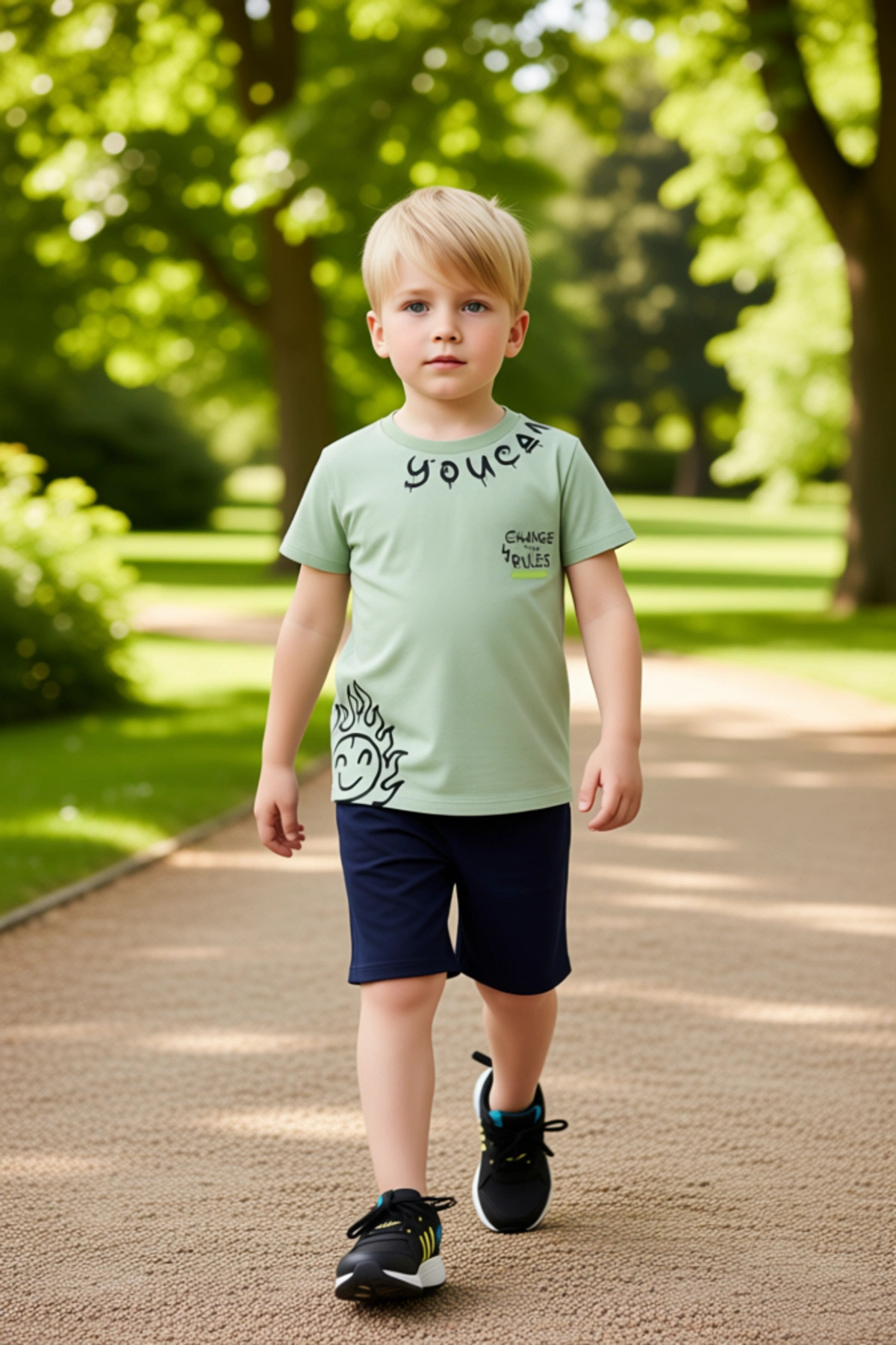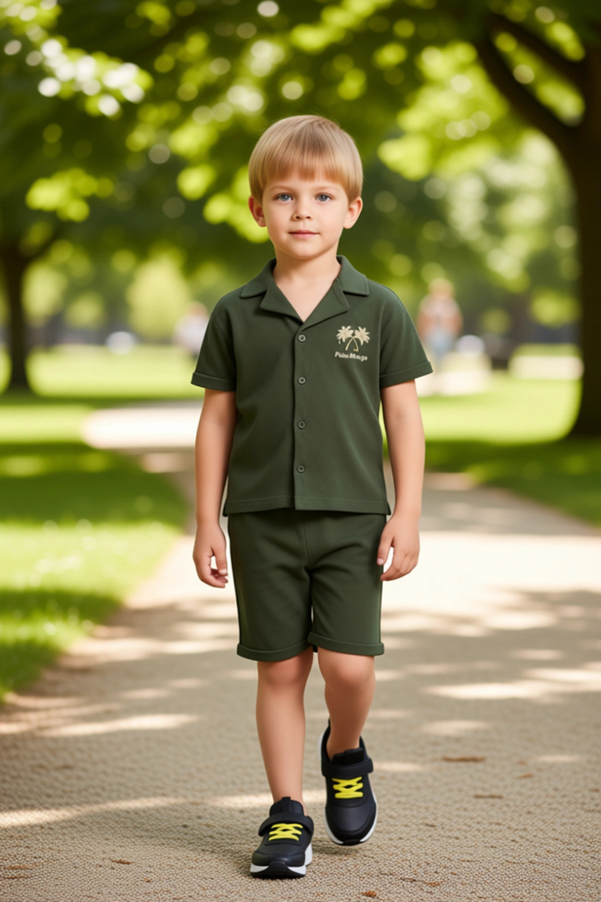 Erkek Çocuk Örme Dokulu Gömlek ve Şort Seti Yazın Enerjisi ve Rahatlığı Bir Arada Kaliteli