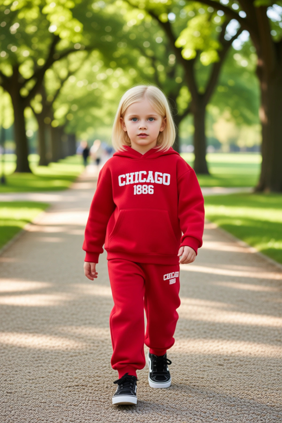 Chicago 1886 Kapüşonlu Oversize Sweatshirt ve Eşofman Altı Takımı Kız Çocuk Kaliteli Şık Rahat