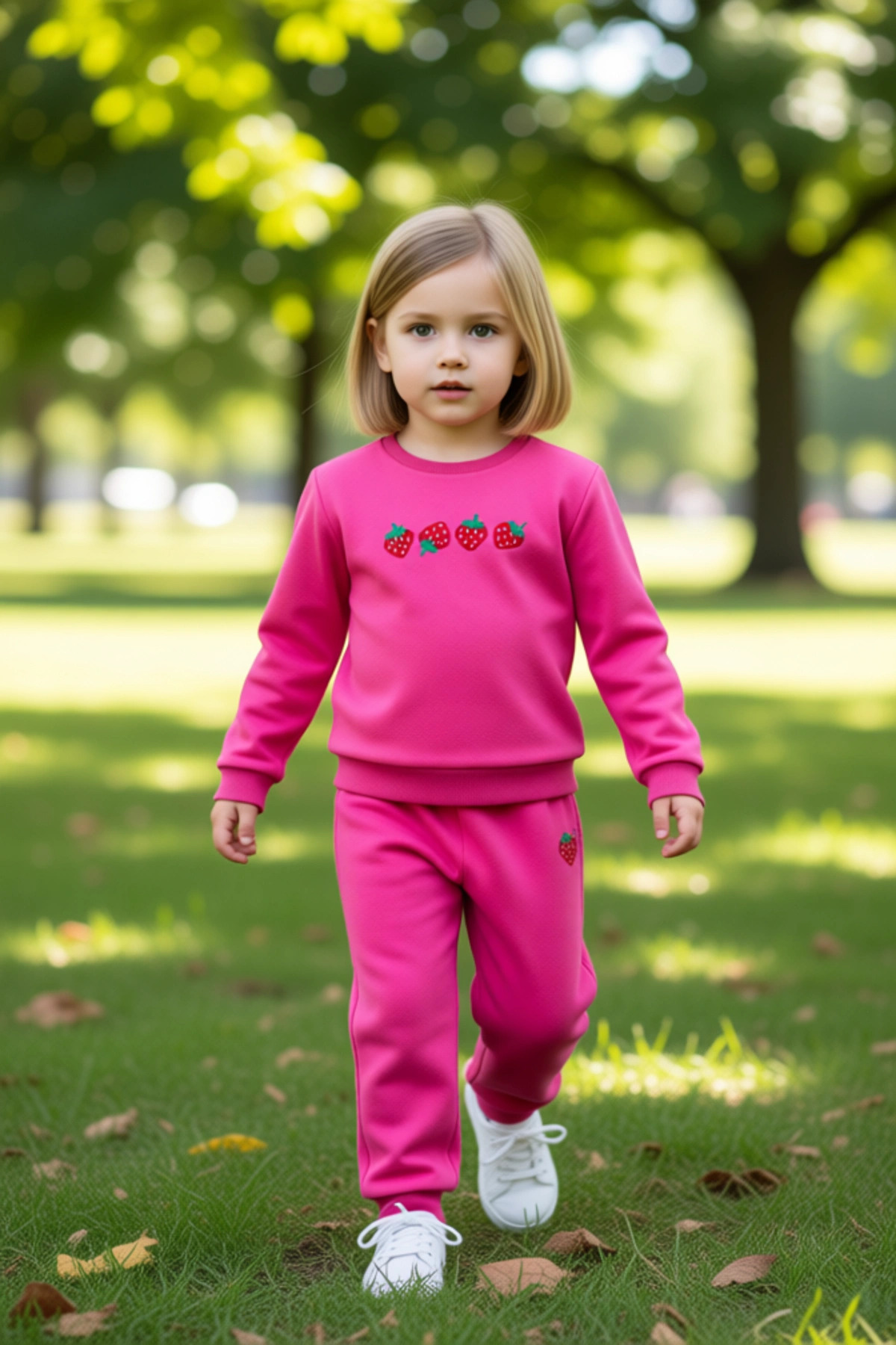 Kız Çocuk Üçlü Pamuklu Fermuarlı Kapüşonlu Üst ve Ribana Detaylı Pantolonlu Set Kaliteli Şık