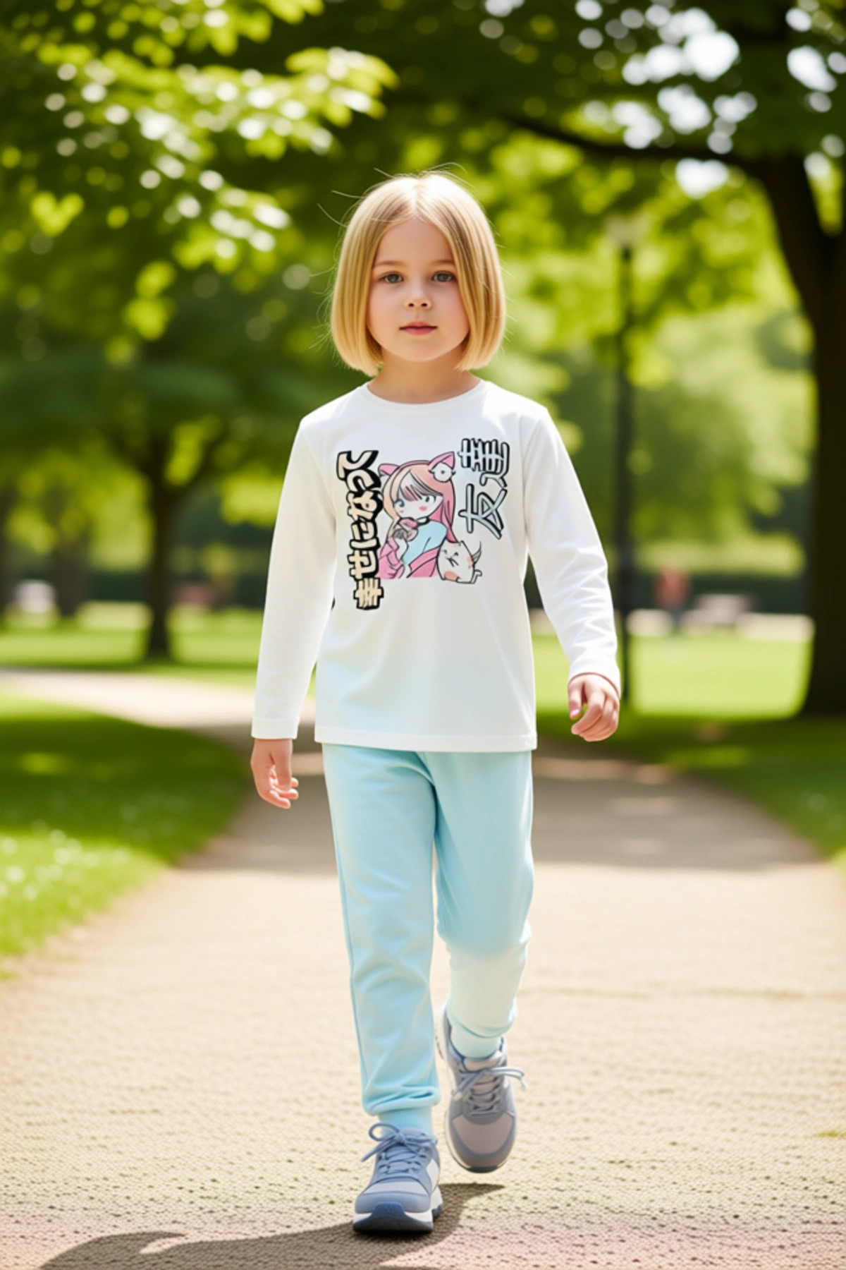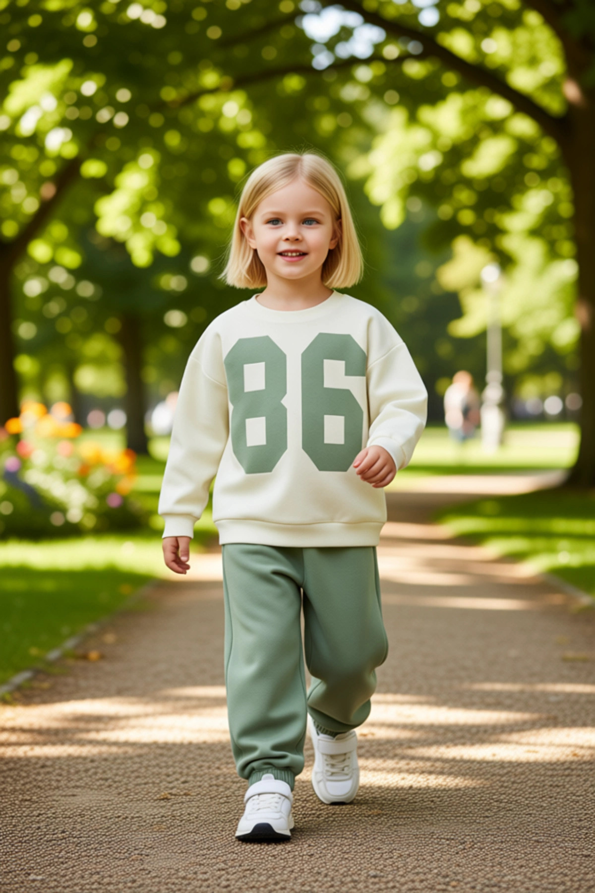 Genç Kız Pamuklu Oversize Sweatshirt ve Eşofman Altı Takımı Spor ve Eğlence Kaliteli Şık Rahat