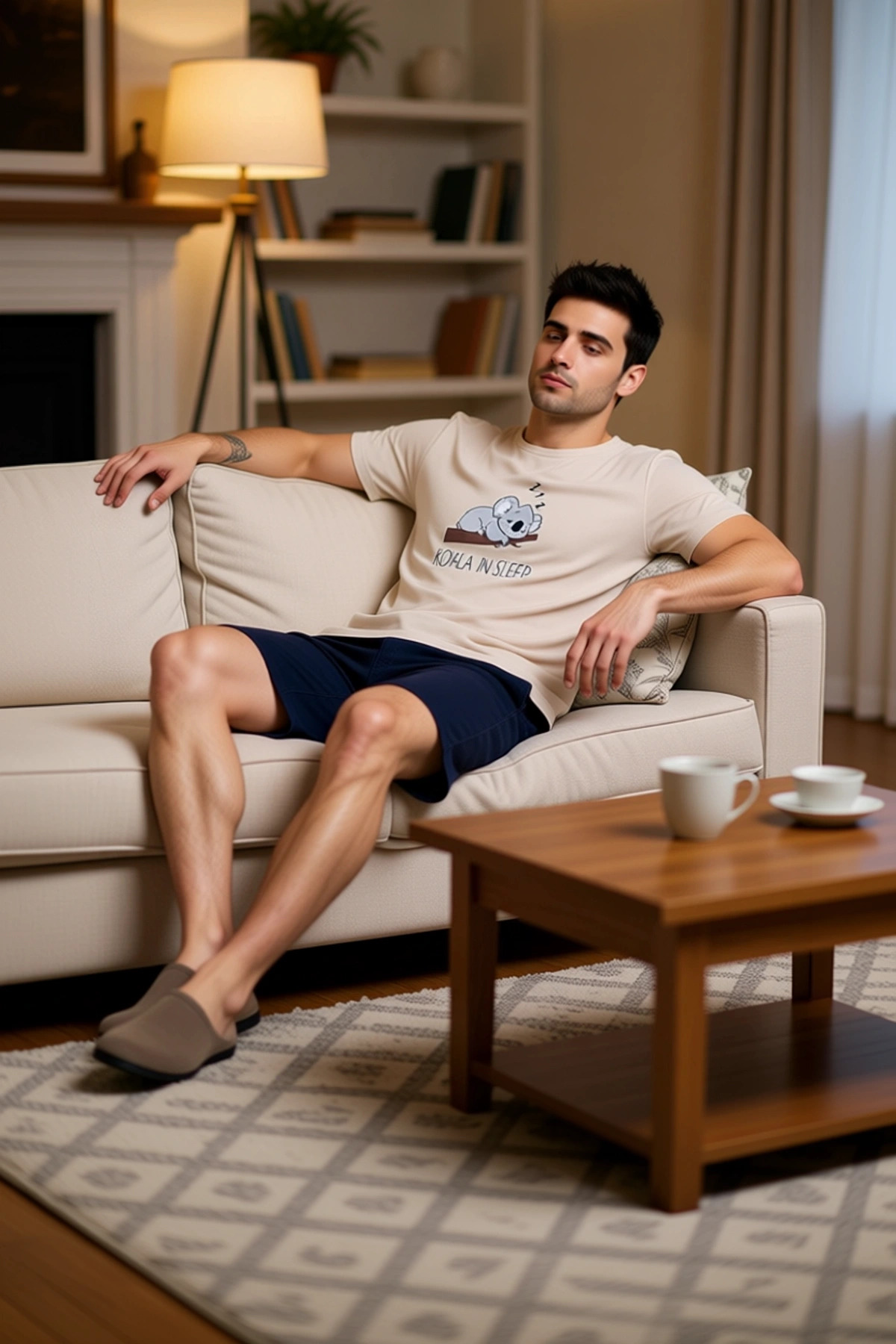 Erkek Indigo Koala Baskılı Bisiklet Yaka Pijama Takımı Fonksiyonel Dayanıklı Kaliteli Spor