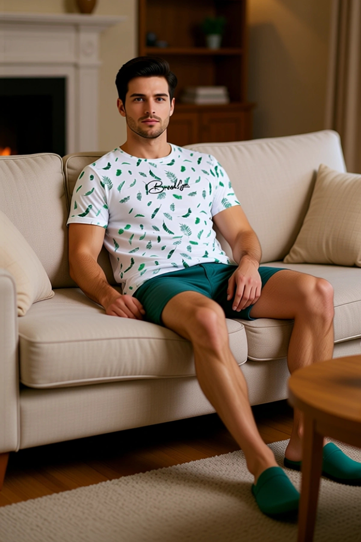 Erkek Yaprak Baskılı Pamuklu Pijama Takımı Fonksiyonel Dayanıklı Kaliteli Konforlu Estetik