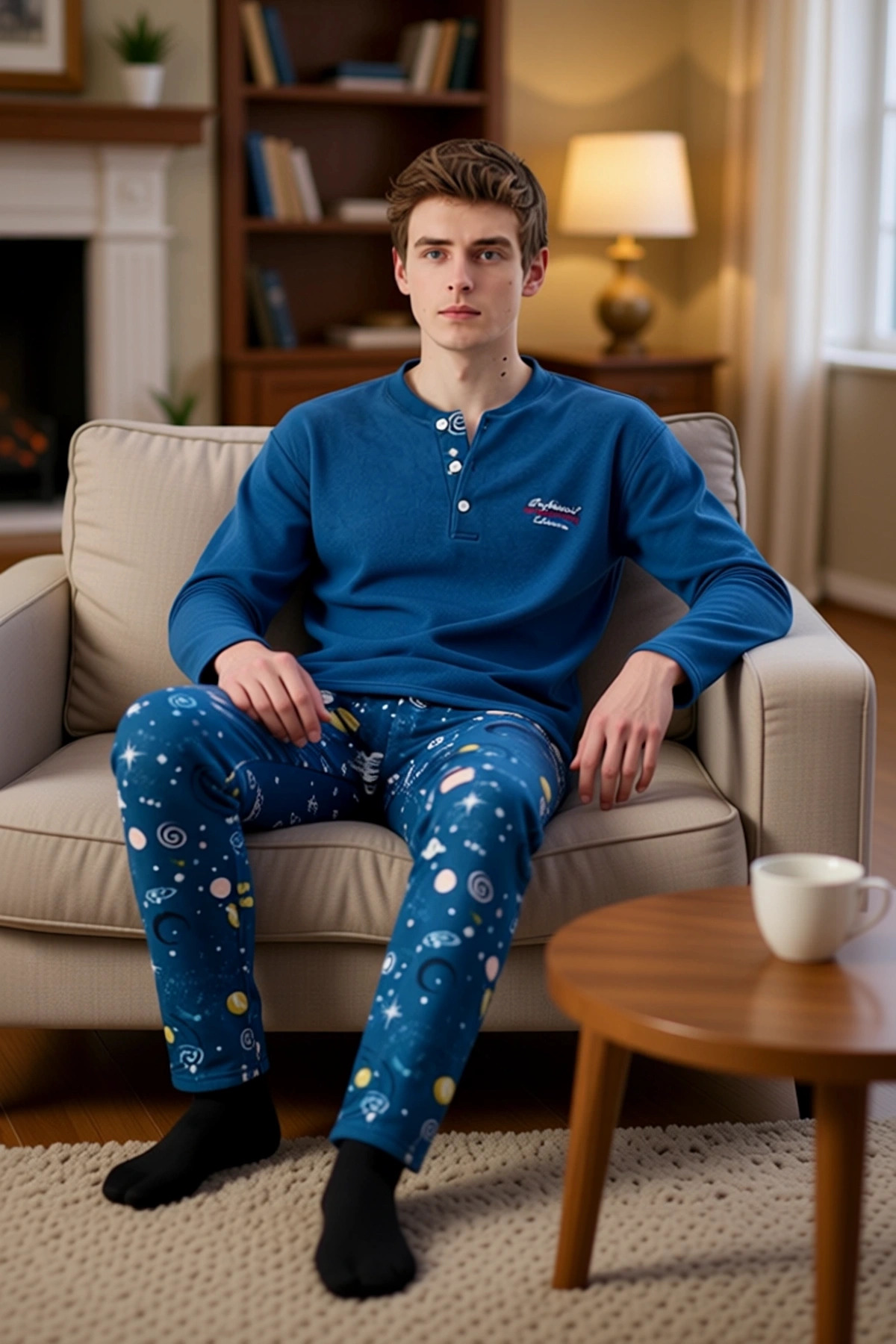 Erkek Uzun Kollu Baskılı Ev Giyim Takımı Fonksiyonel Dayanıklı Kaliteli Konforlu Estetik Şık