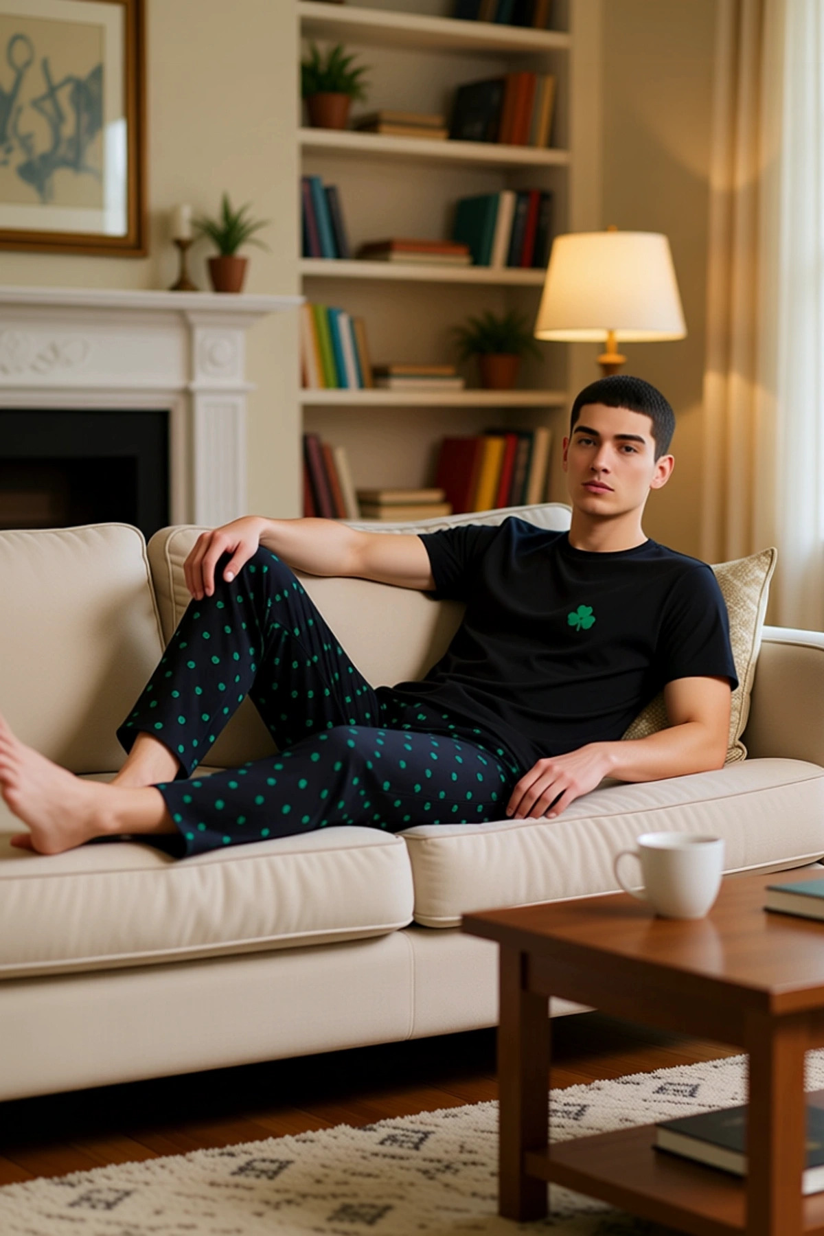 Erkek Yonca Desenli Ev Giyim Pijama Takımı Fonksiyonel Dayanıklı Kaliteli Konforlu Estetik