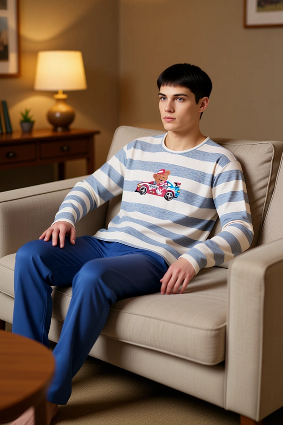 Cool Ayıcık Yarışçı Baskılı Regular Kesim Pijama Takımı Erkek Fonksiyonel Dayanıklı Modern