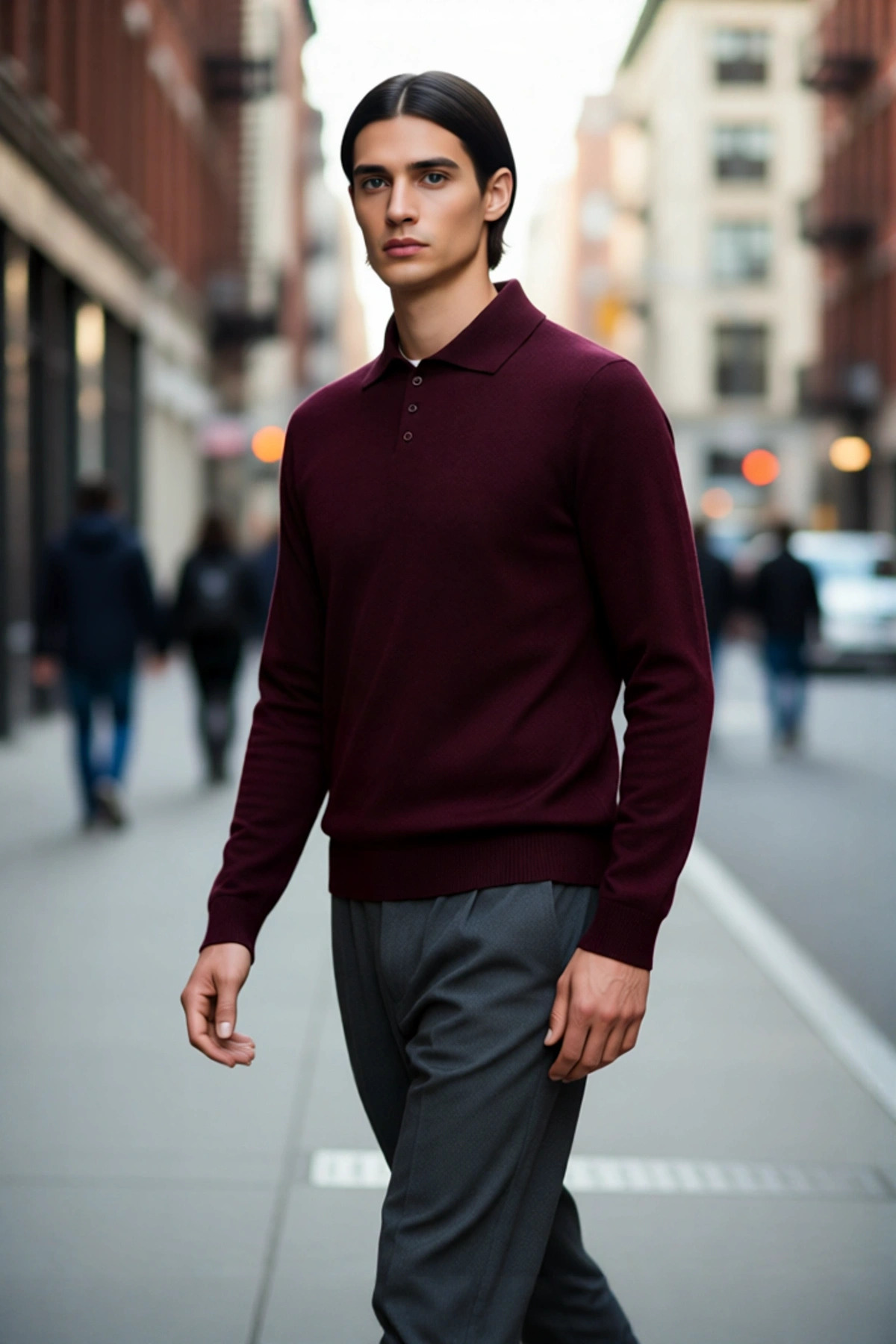 Erkek Basic Fitted Polo Yaka Uzun Kollu İnce Triko Kazak Casual Tarzı Tamamlayan Şıklık Kaliteli