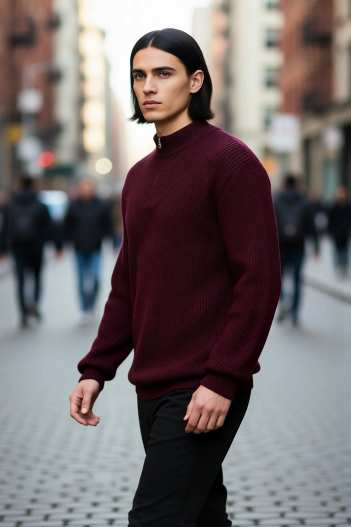 Erkekler İçin Modern Fitted Kesim Yarım Balıkçı Yaka Akrilik Triko Kazak Günlük Şıklık Ve Sıcaklık.