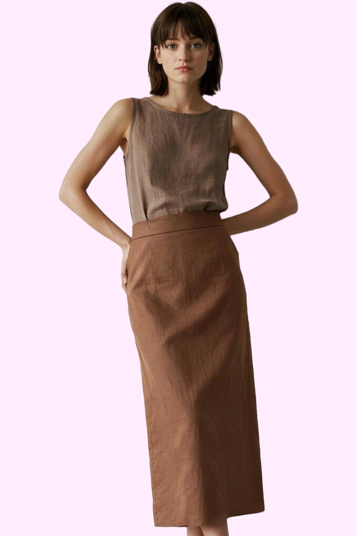 Kadın Pamuk Keten Görünümlü Midi Kalem Etek Günlük ve Ofis Şıklığı Yaz Aylarının Vazgeçilmezi