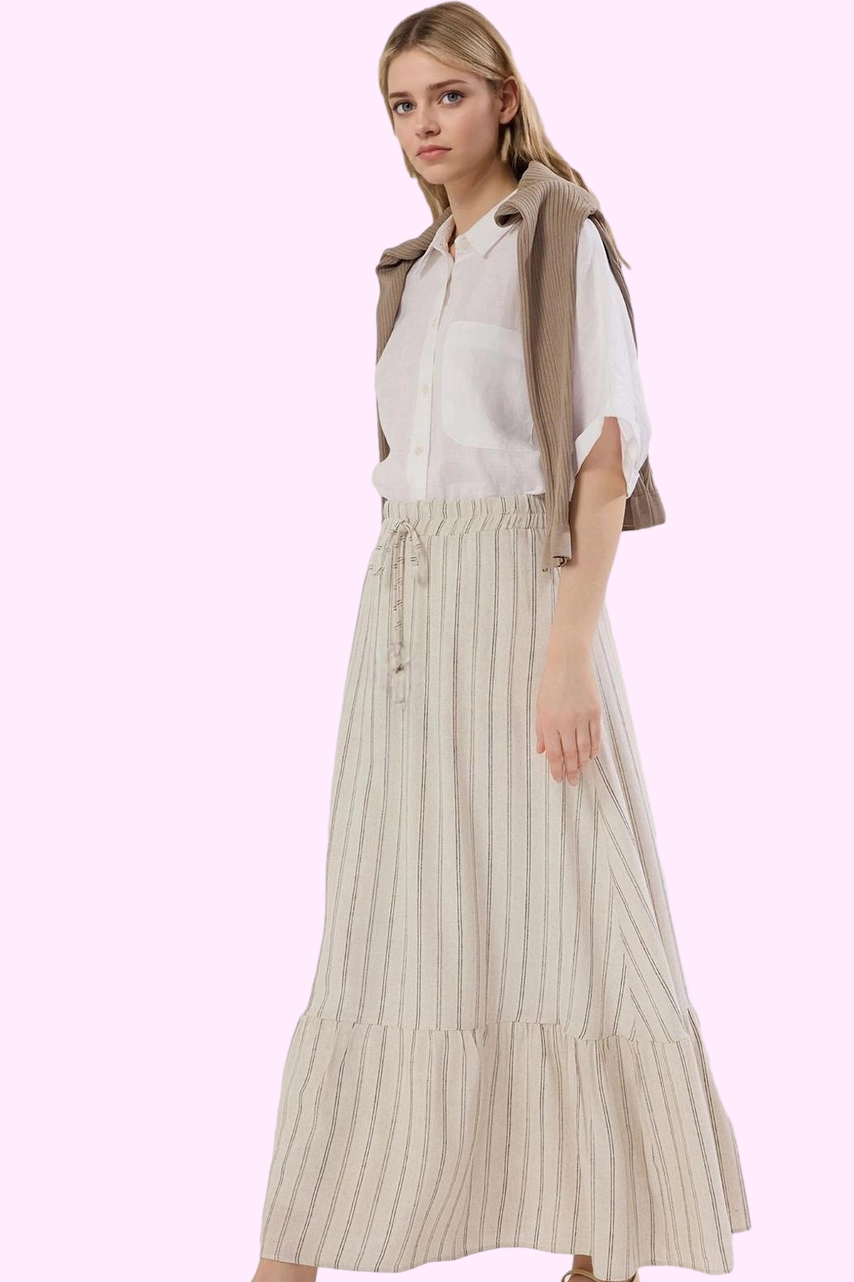 Kadın A line Maxi Etek Bağlama Detaylı Rahat Yazlık Günlük Stil Yaz Aylarının Vazgeçilmezi