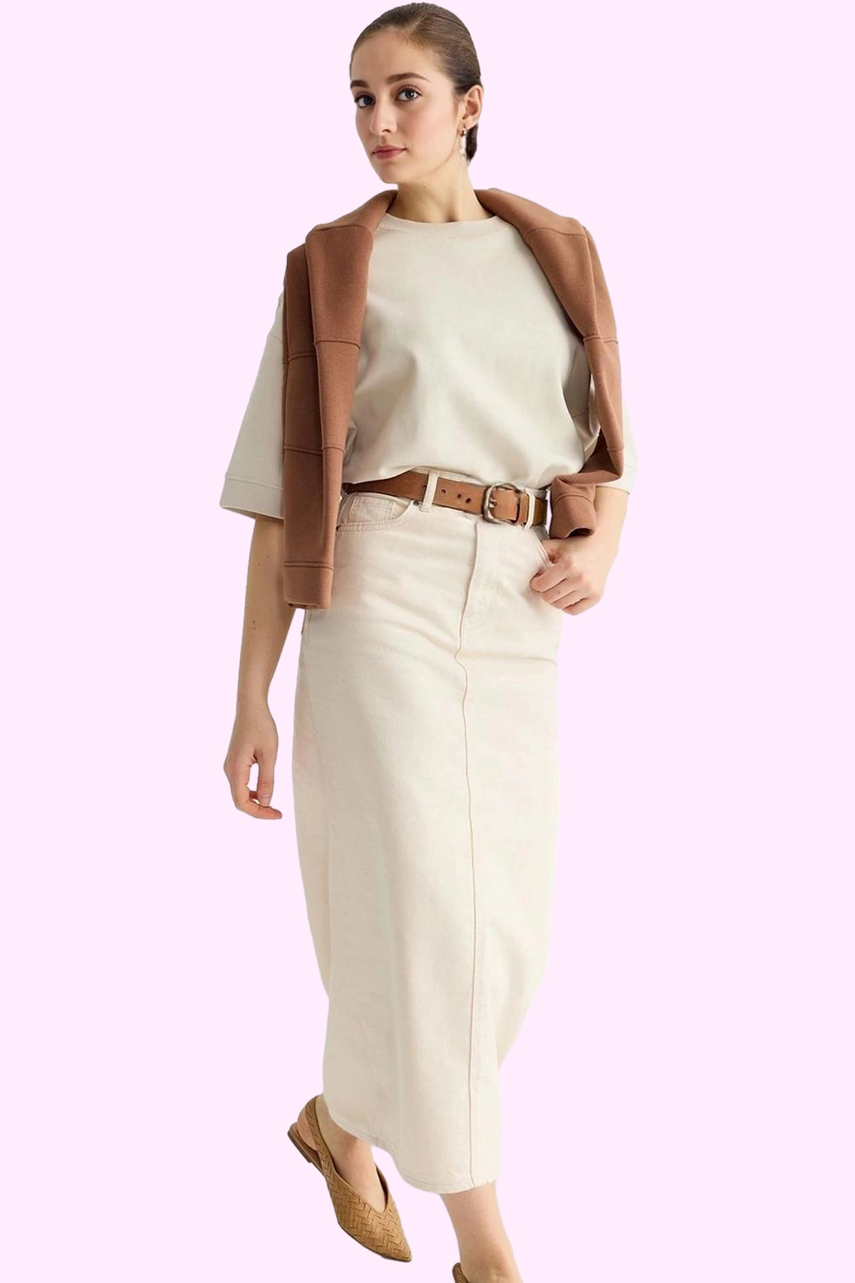 Kadın Pamuklu Midi Etek Günlük Casual Kombinler İçin Rahat Kalem Kesim Yaz Aylarının Vazgeçilmezi