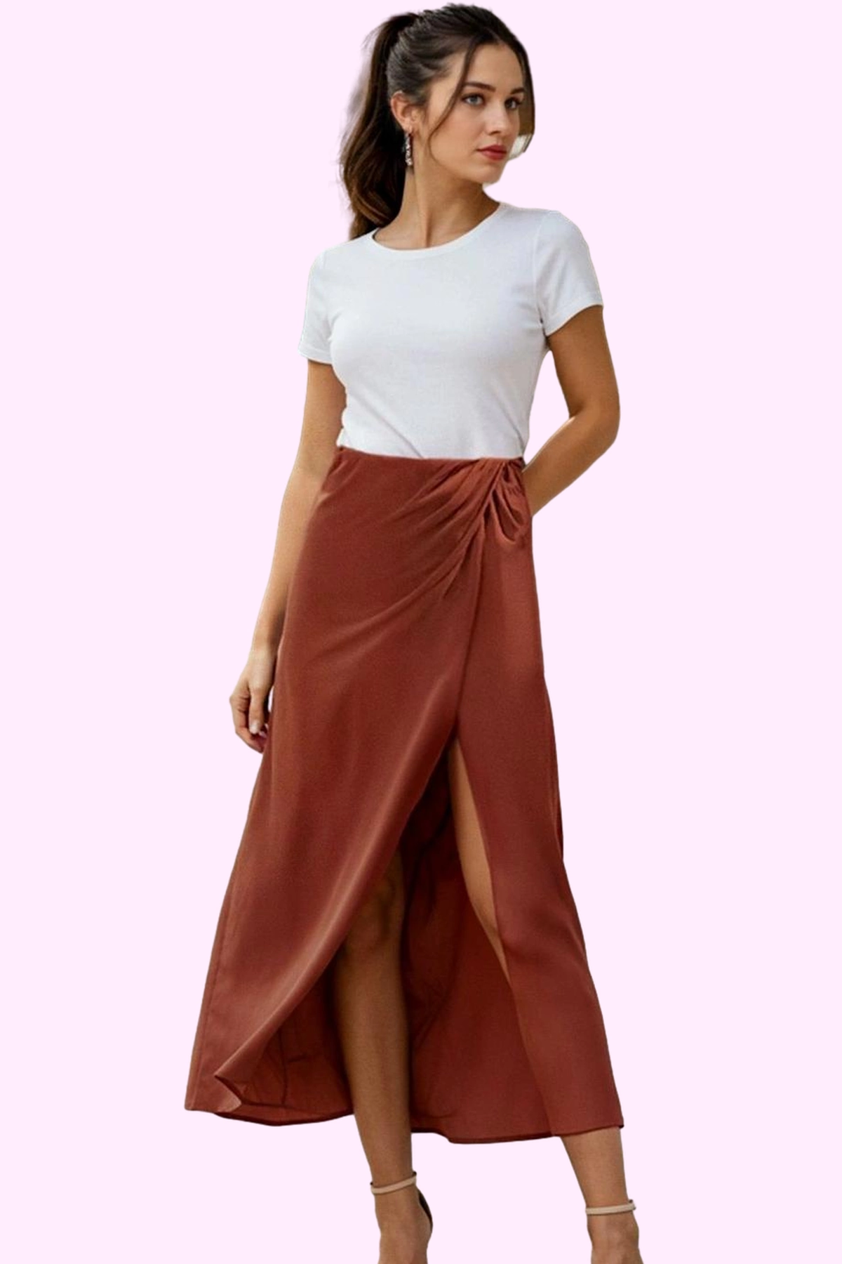 Kadın Düz Desenli Dokuma Midi Etek Rahat Günlük Kombinler Hafta Sonu Yaz Aylarının Vazgeçilmezi