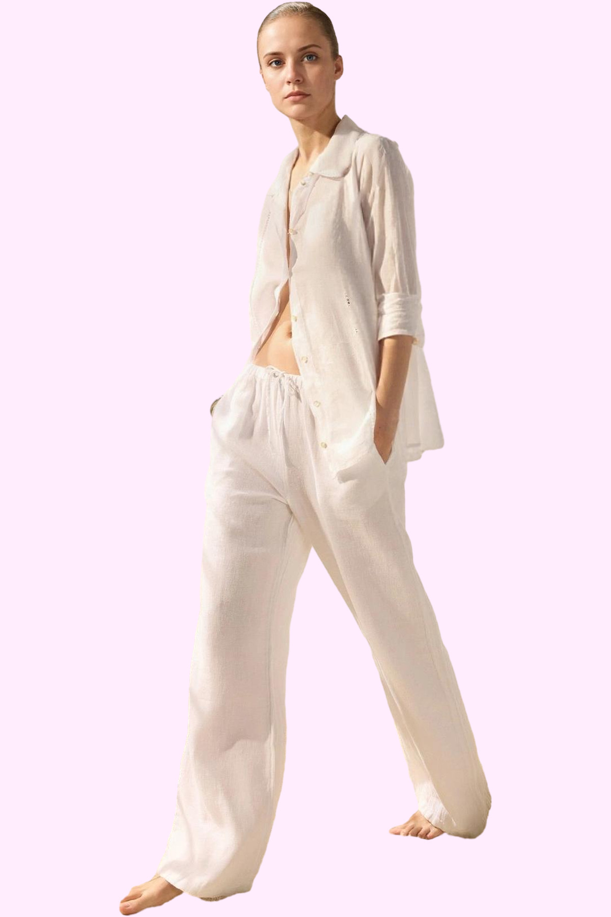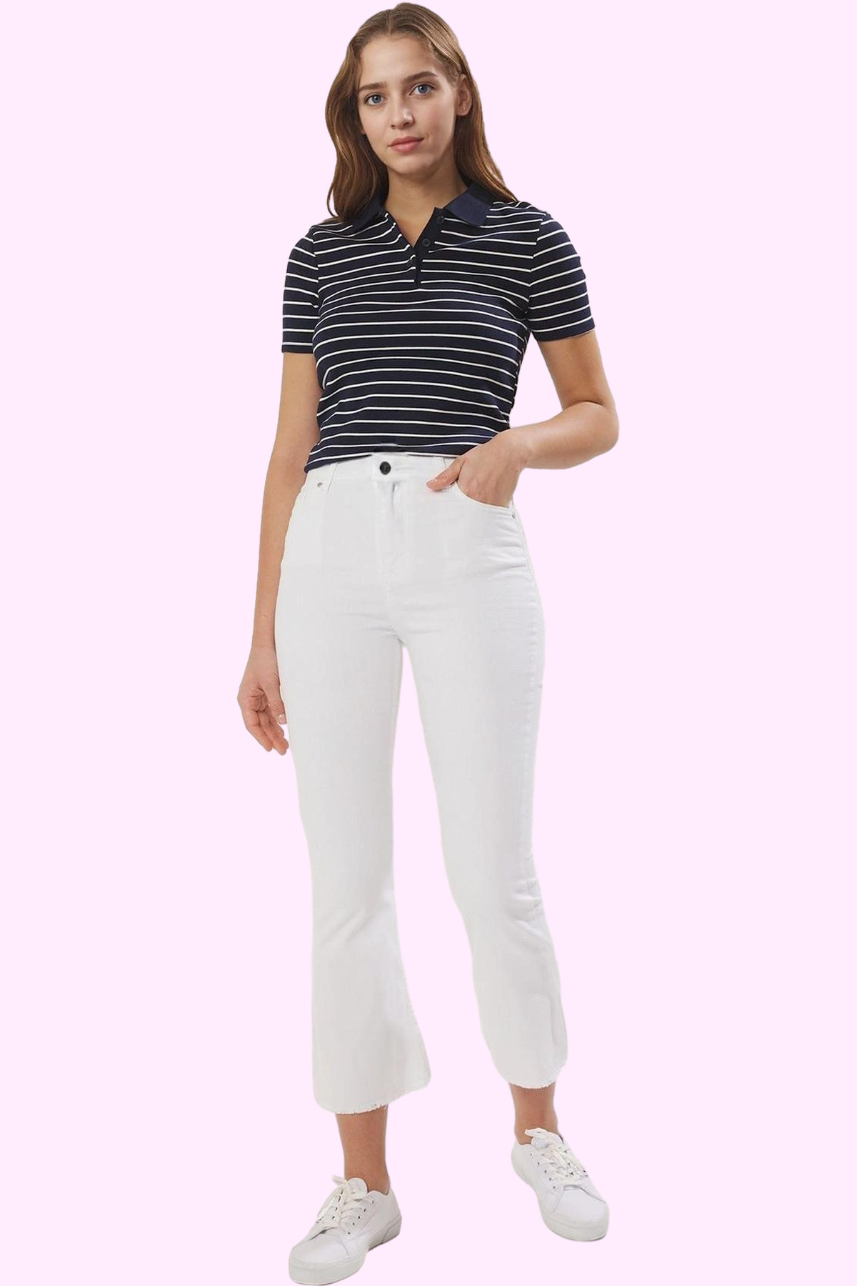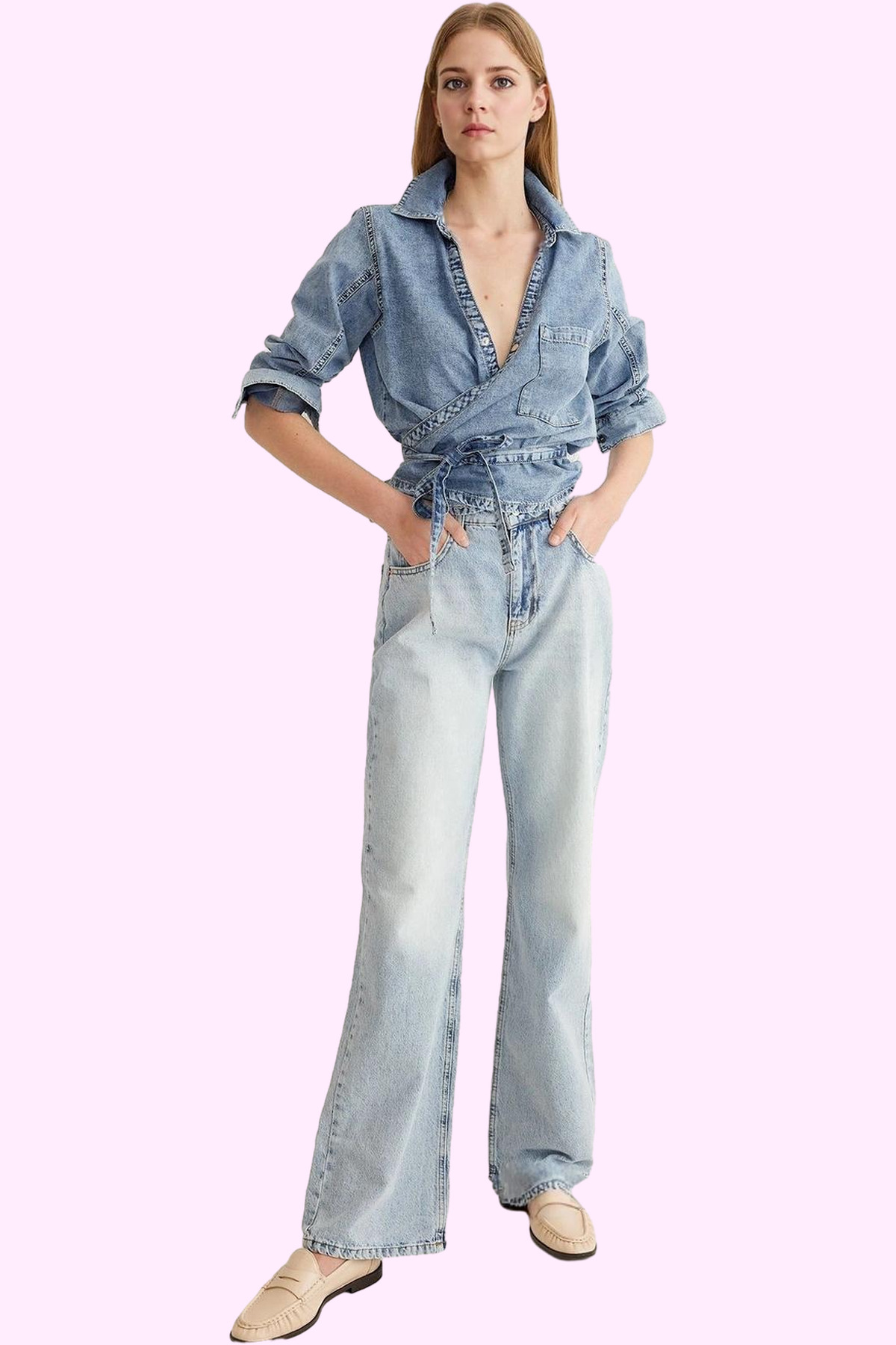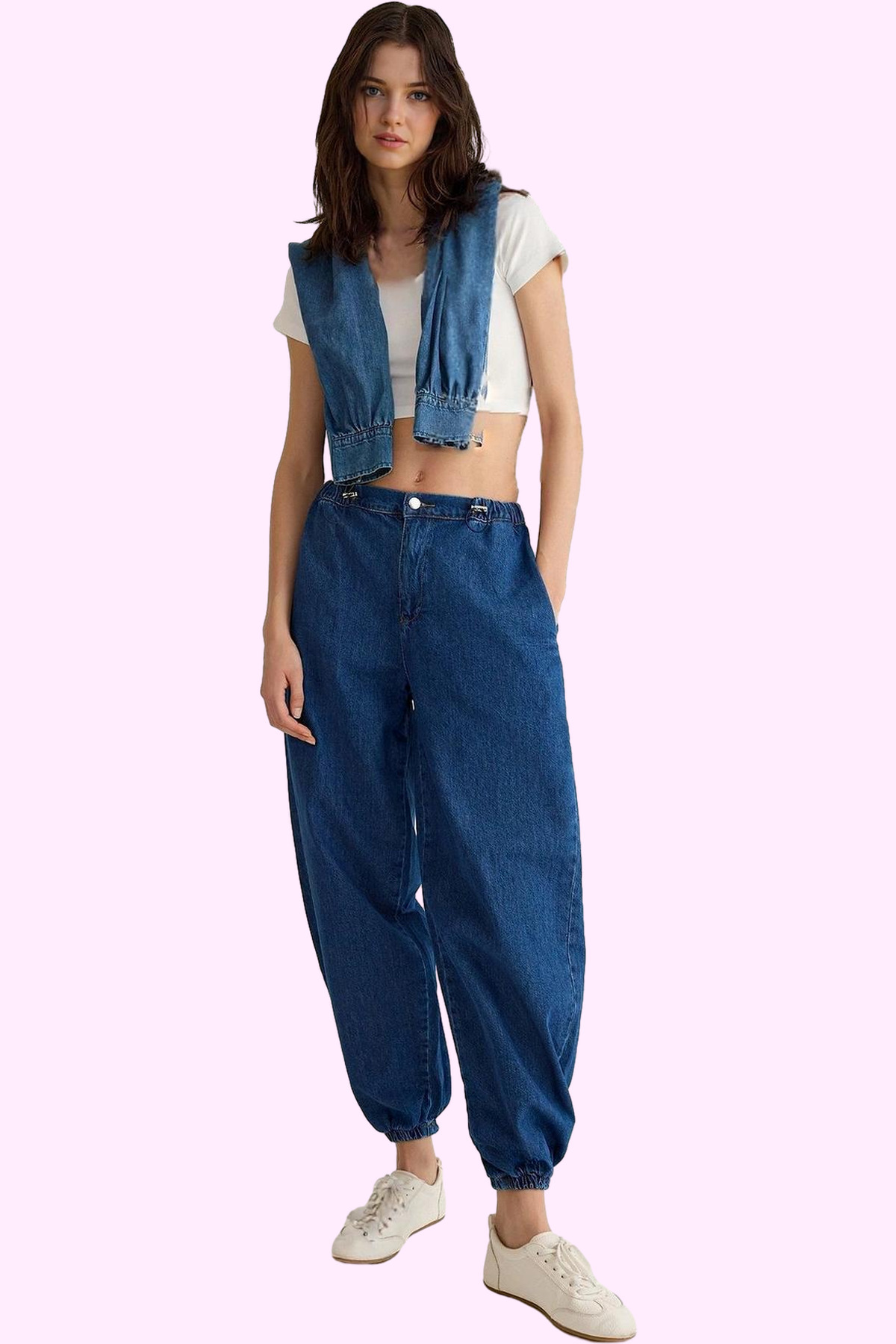 Kadın Pamuklu Denim Geniş Paça Pantolon Günlük Kullanım için Hafta Sonu Yaz Aylarının Vazgeçilmezi
