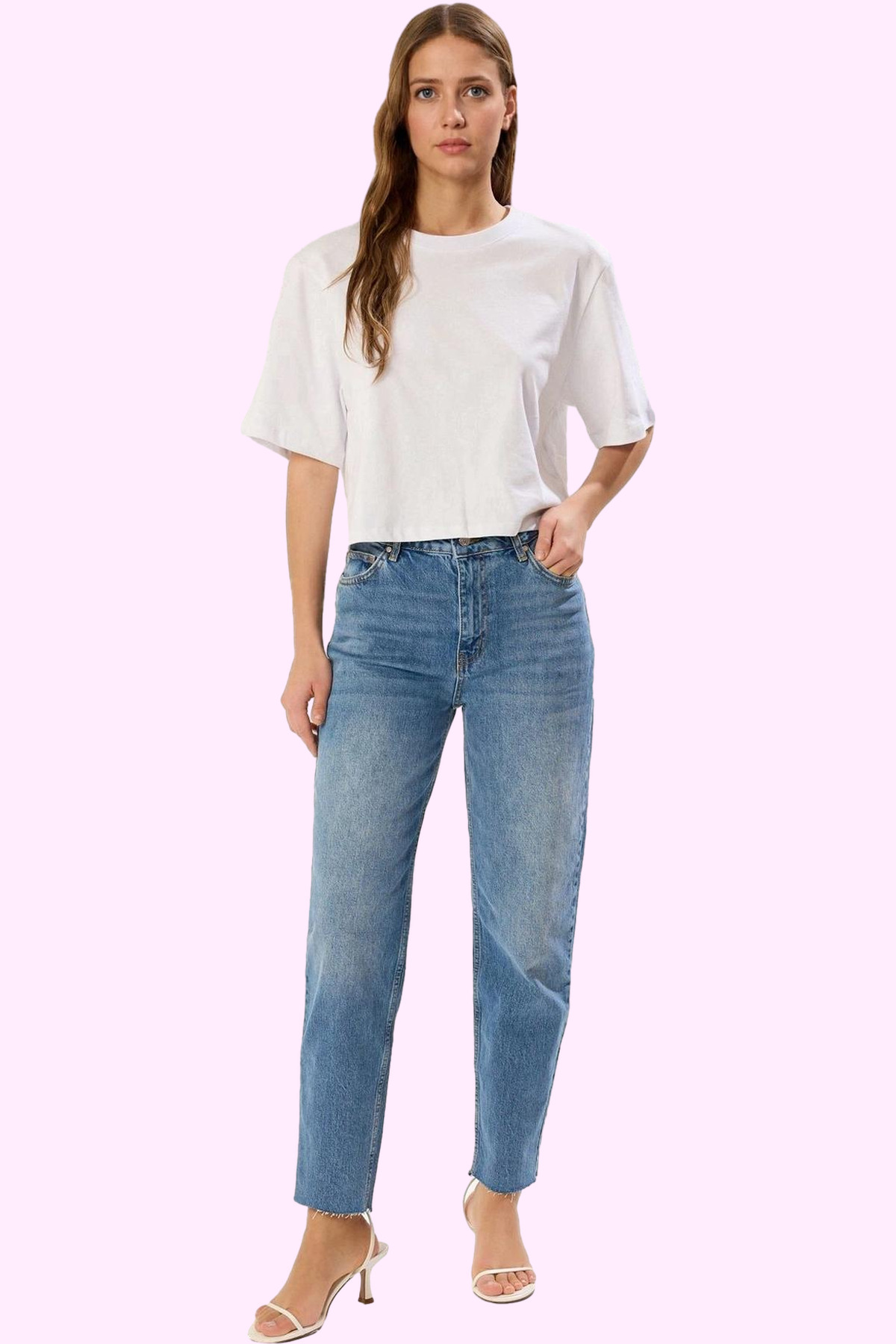 Kadın Straight Jean Pantolon Yüksek Bel Denim Rahat Günlük Hafta Sonu Yaz Aylarının Vazgeçilmezi