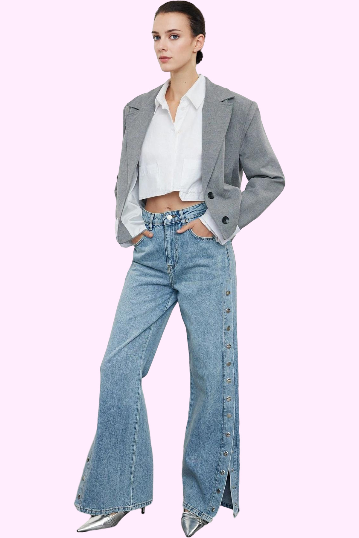 Kadın Denim Flare Jean Yüksek Bel 5 Cep Esnek Günlük Ve Şık Kombinler Yaz Aylarının Vazgeçilmezi