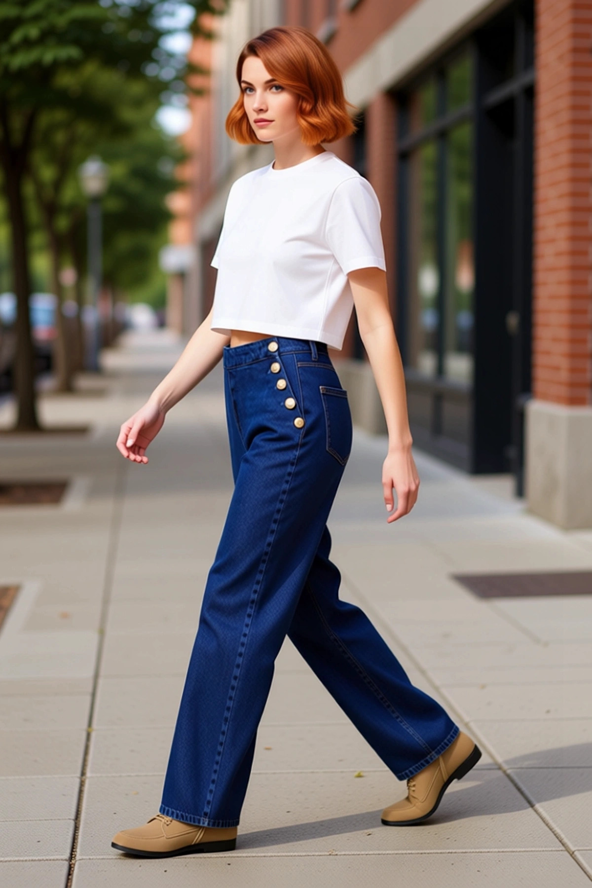 Kadın Yüksek Bel Düğmeli Geniş Paça Koyu Jean Fonksiyonel Dayanıklı Kaliteli Konforlu Spor