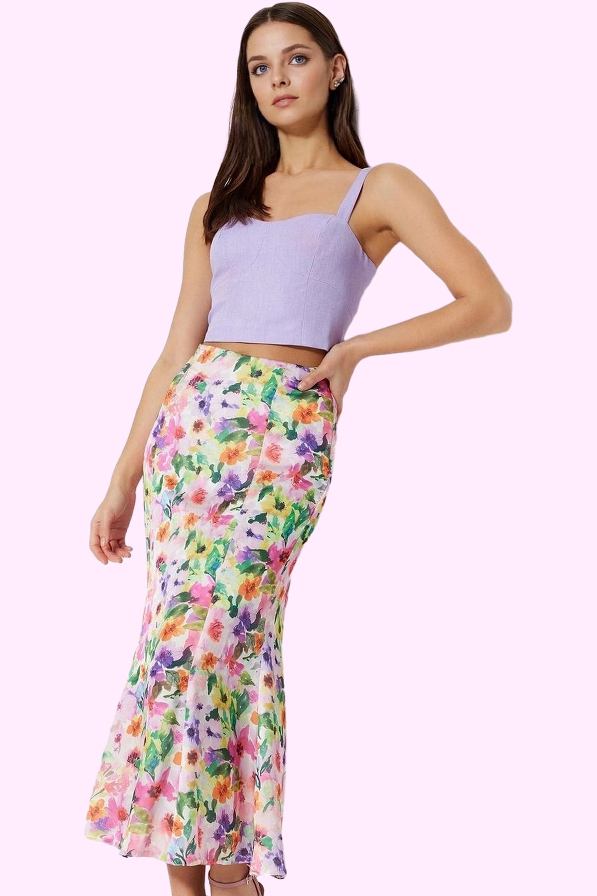 Kadın Çiçek Desenli Balık Etek Astarlı Maxi Boy Yazlık Günlük Kullanım Yaz Aylarının Vazgeçilmezi