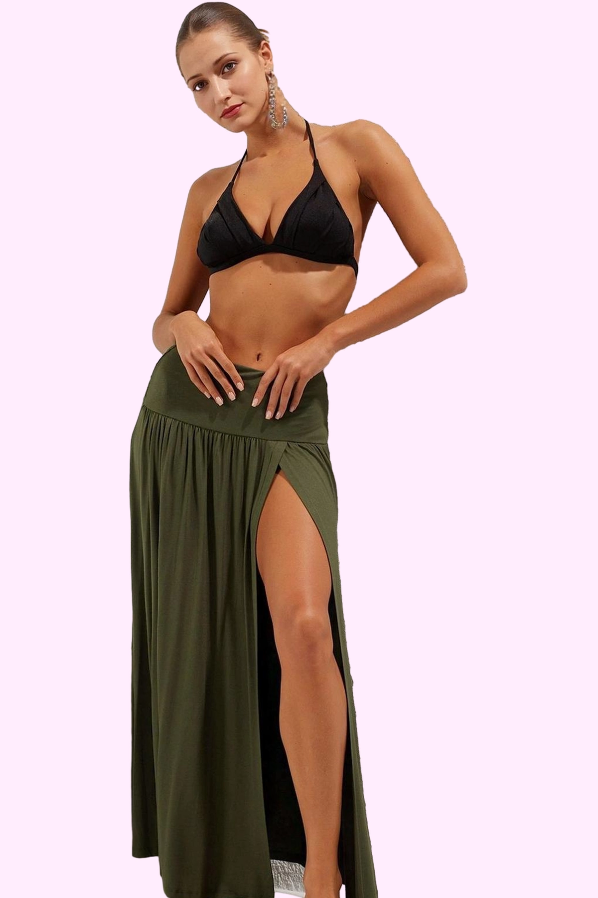 Kadın Poliamid Maxi Etek Yırtmaçlı Beli Lastikli Kış Günlük Kullanım Yaz Aylarının Vazgeçilmezi