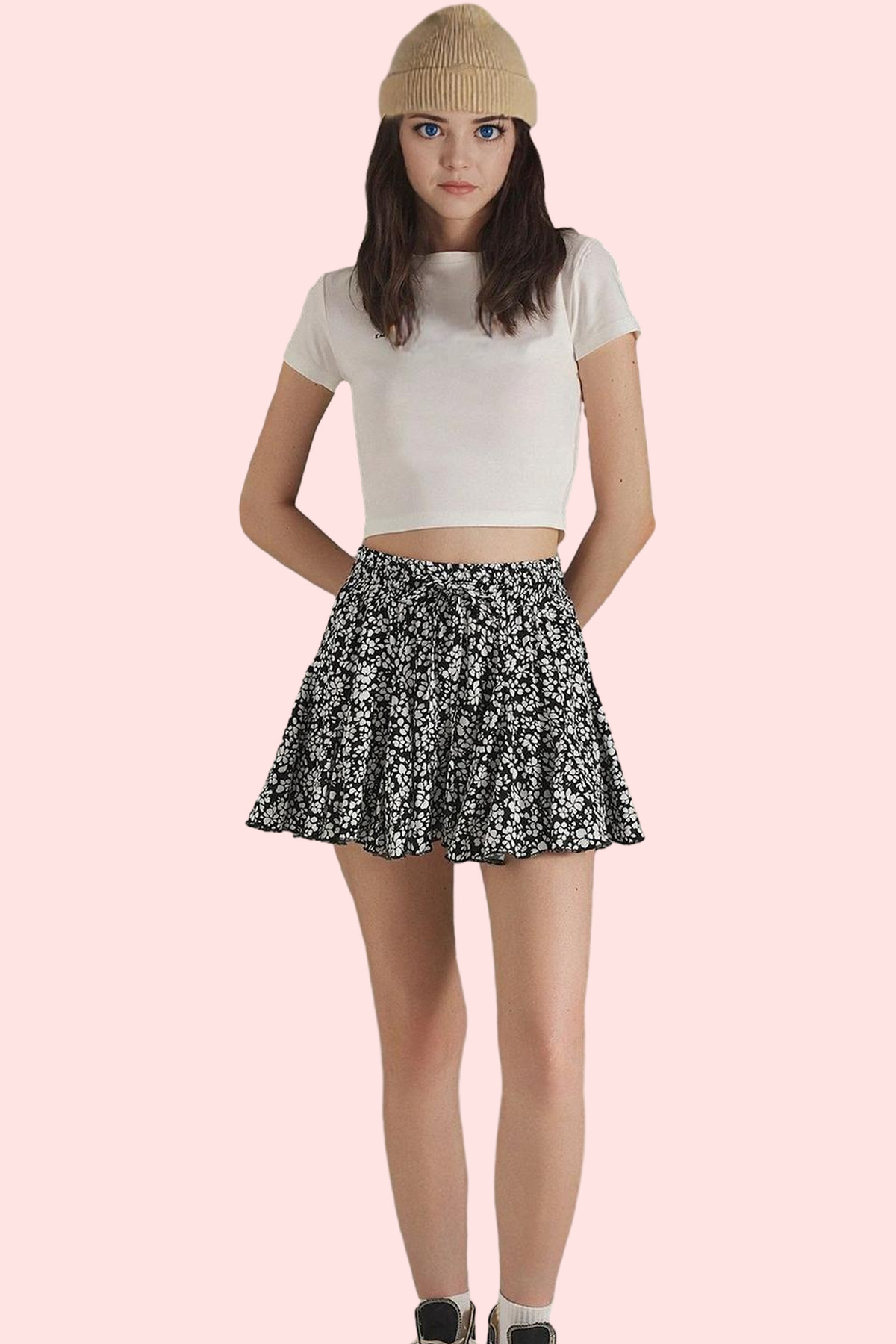 Kadın Mini Şort Etek Yüksek Bel Dar Paça Crinkle Dokuma Rahat Günlük Kombinler Özel Günler